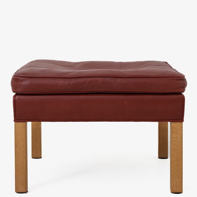 BM 2202 - Skammel i patineret, rødt læder med ben i eg.