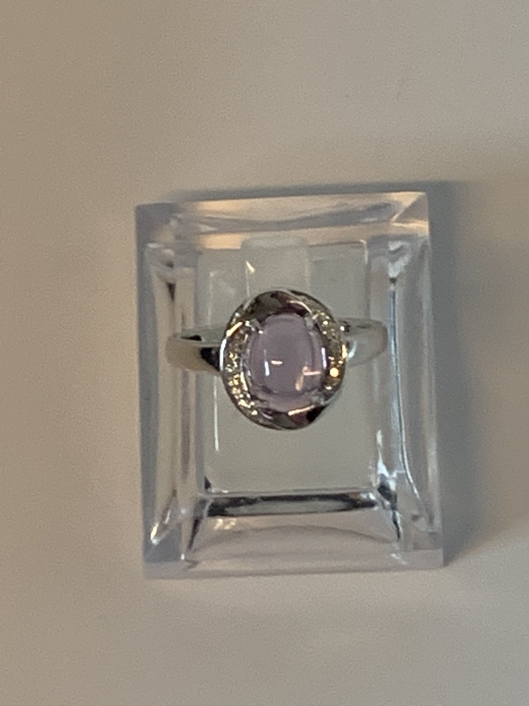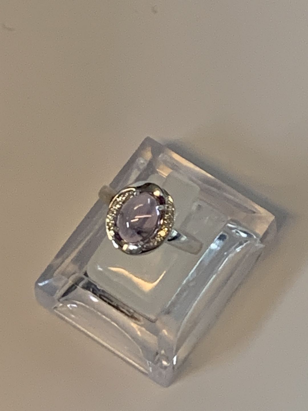 Damering med brillanter og lilla sten 14 karat hvidguld
