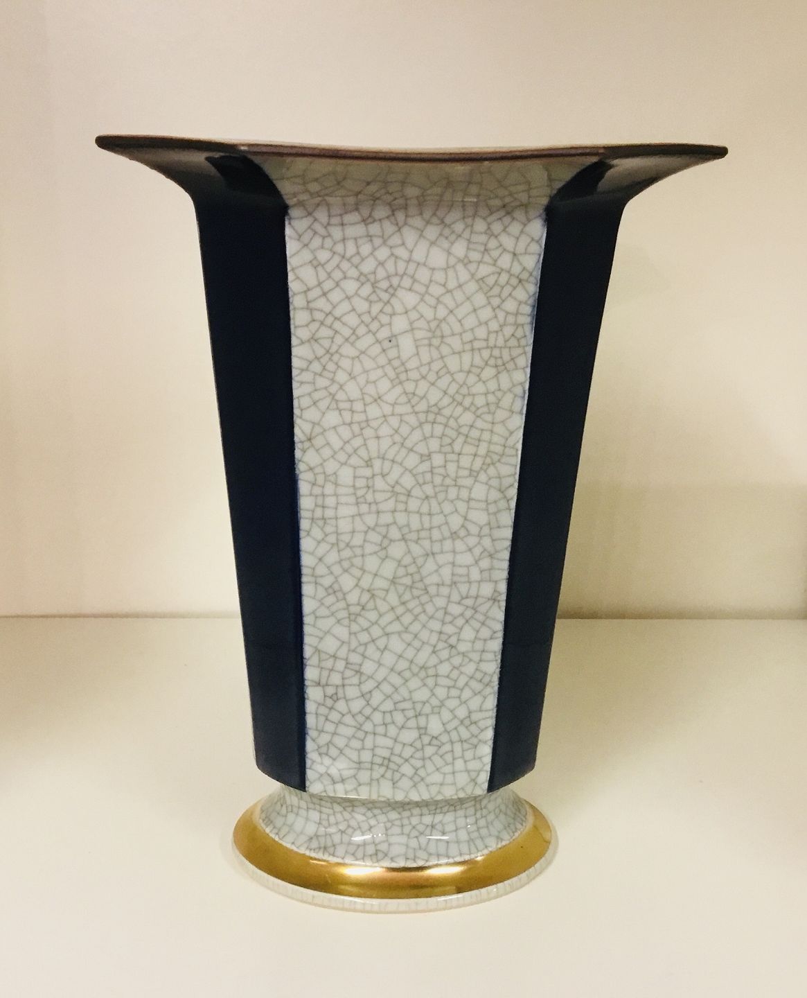 Royal Copenhagen Krakele Vase med Blå kanter i meget fin stand, 1 sort. H 18 cm