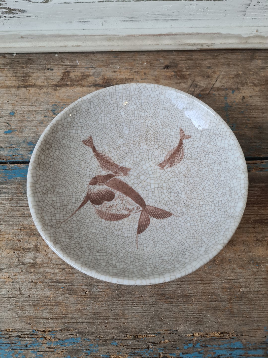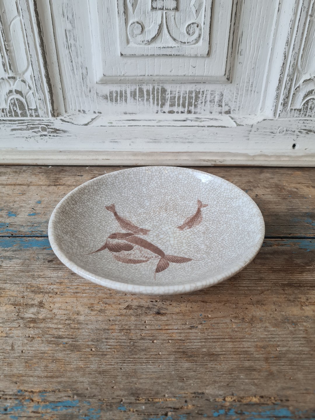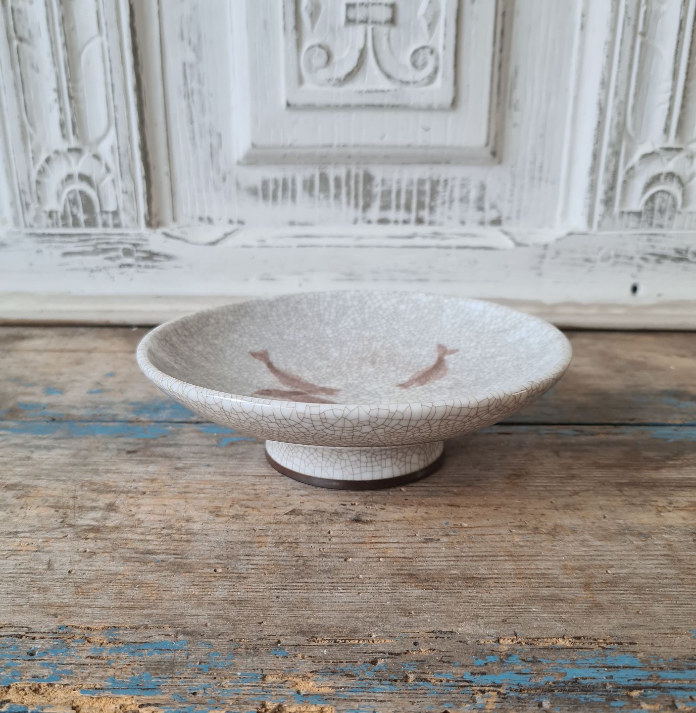 B&G Art Deco skål på fod dekoreret med fisk.