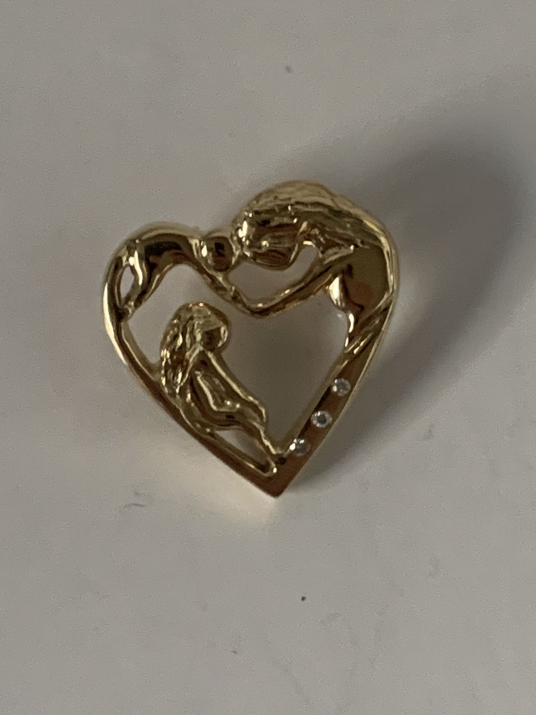Mor og barn Hjerte Vedhæng i 14 karat guld med tre Brillanter.