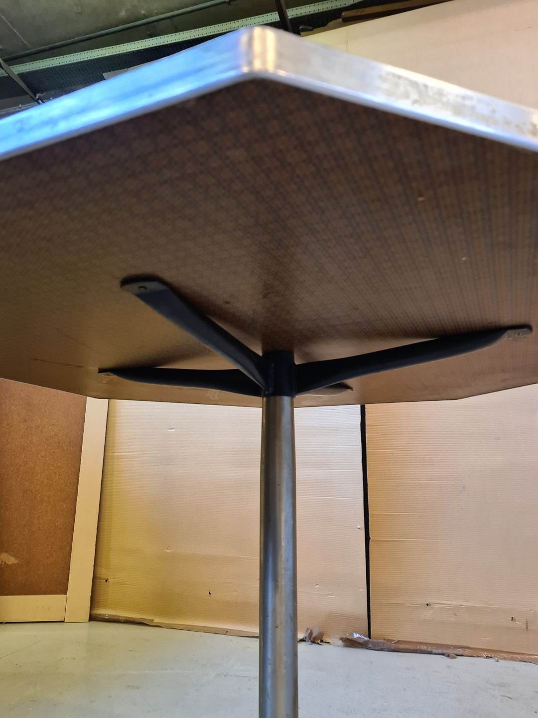 Bord i metal med bordplade af laminat, fra 1980erne.