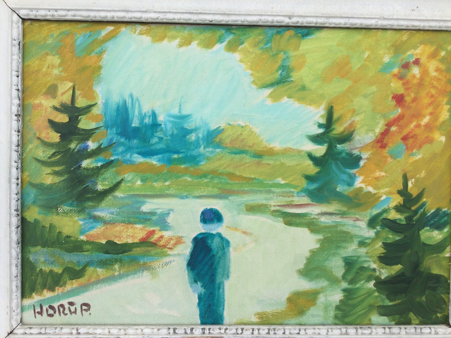 Maleri af Knud Horup - Person i skovlysning.