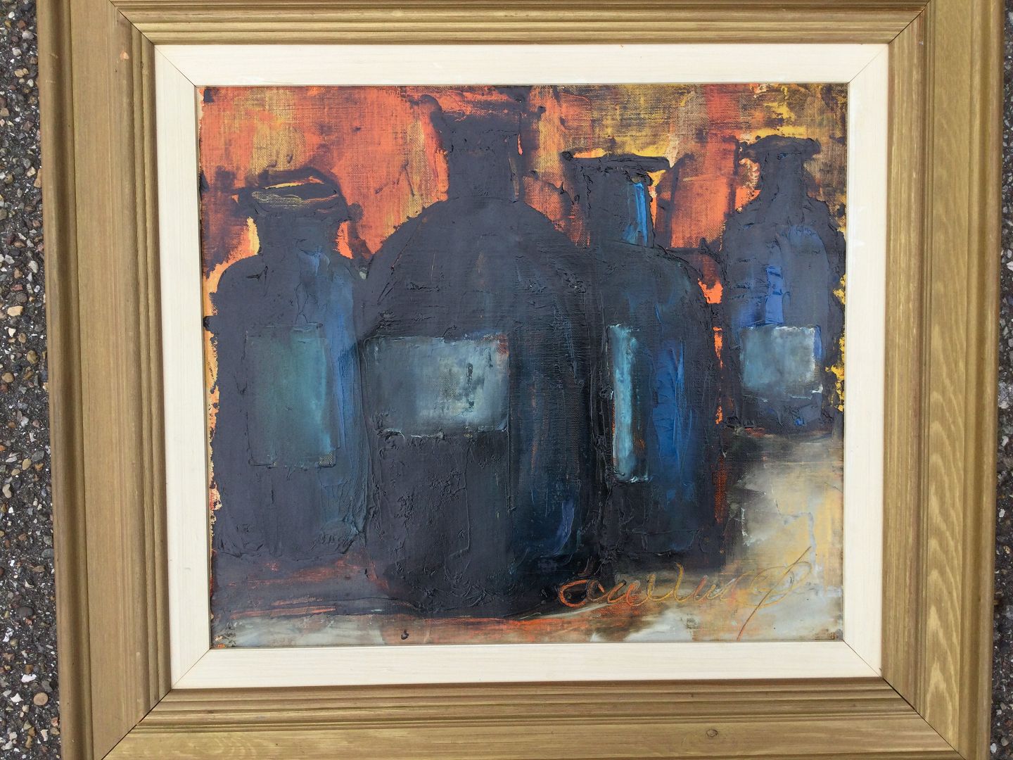 Maleri - Opstilling med flasker af Adelbert Winther Venø.