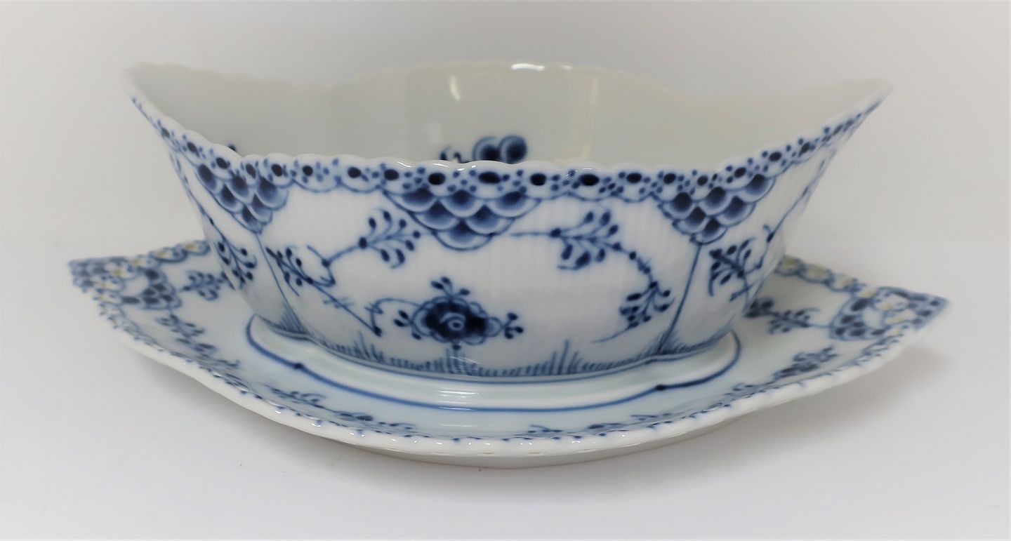 Royal Copenhagen. Blue fluted, full lace. Sauce bowl. Model 1105. Length 23.5 cm. (1 quality)