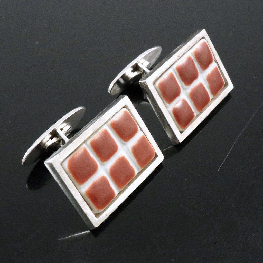 Royal Copenhagen / A. Michelsen. Porcelain and Sterling Silver Cufflinks.