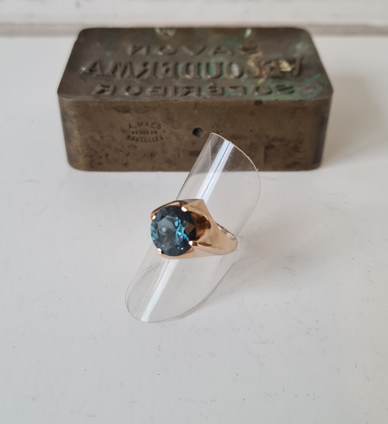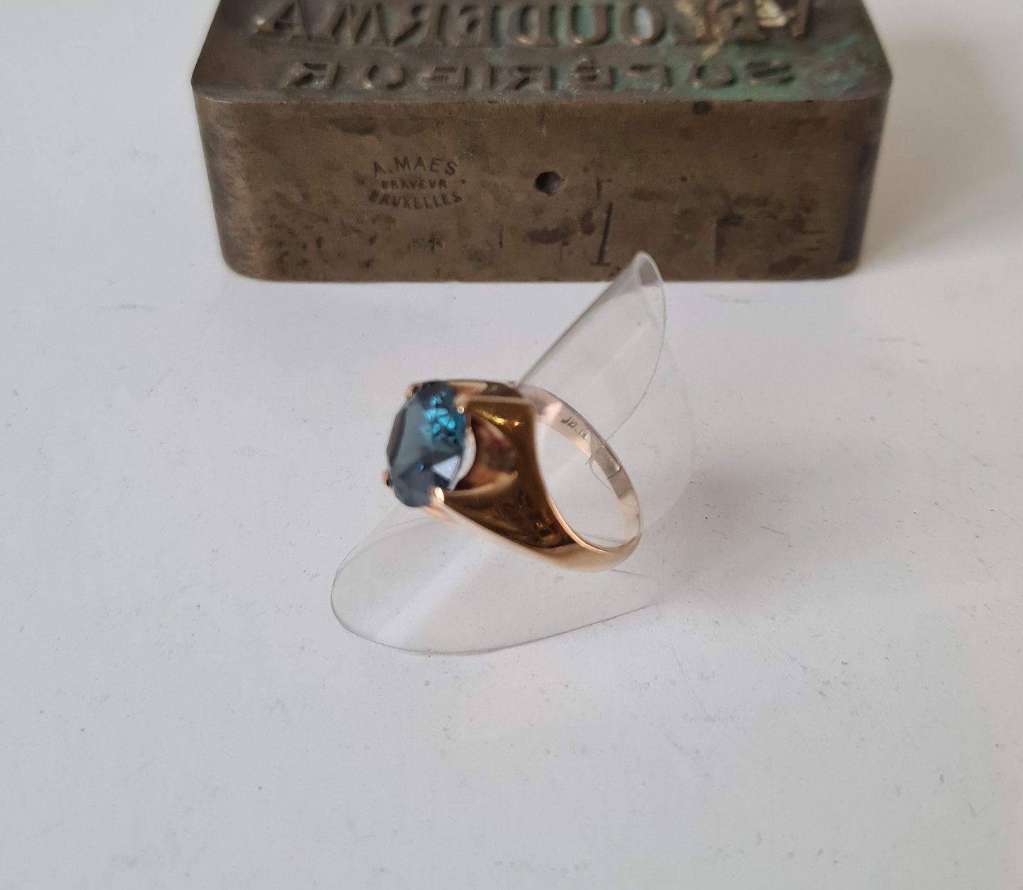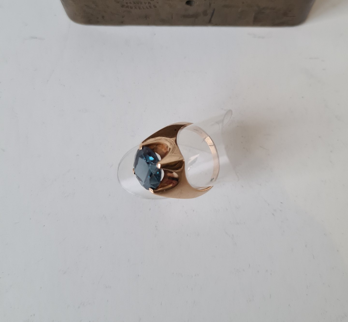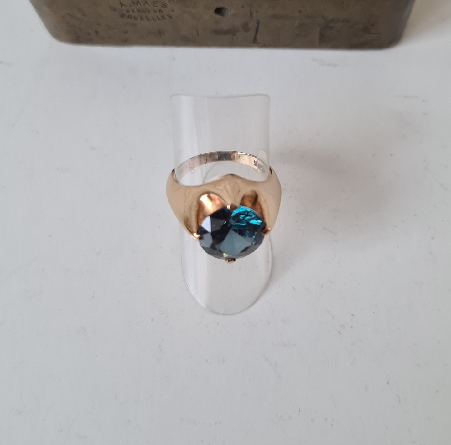 Vintage ring i 14 kt guld med stor sten i meget flot blå - grøn farve
