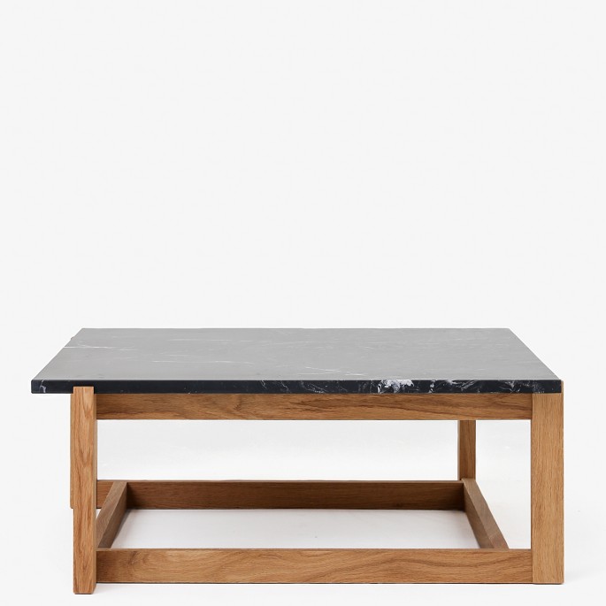 'Studio' kvadratisk sofabord i massiv, olieret stel af eg med sort marmor.