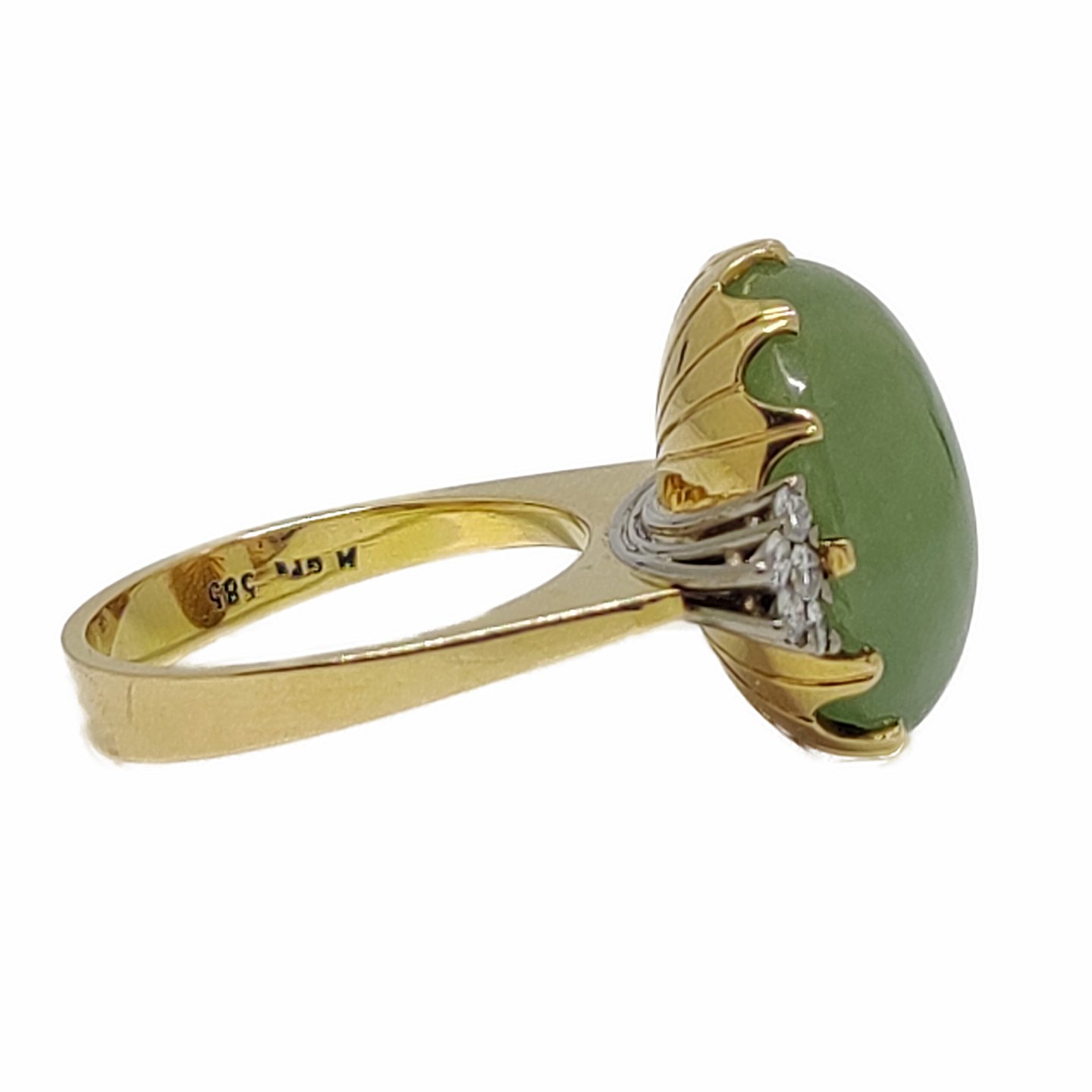 Hugo Grün; Ring i 14 kt. guld og hvidguld prydet med jade og diamanter, i alt ca. 0,30 ct. Wesselton (H) - VS. Ring str. 55.
