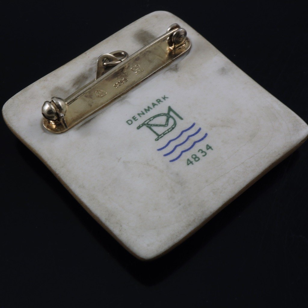 Royal Copenhagen / A. Michelsen. Gold Plated Porcelain and Sterling Silver Brooch / Pendant #4834.