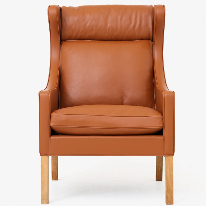 BM 2204 - Reupholstered 'Wingback Chair' in 'Prestige' cognac semi-aniline leather. KLASSIK offers the chair in textile or leather of your choice. Please contact us for more information.