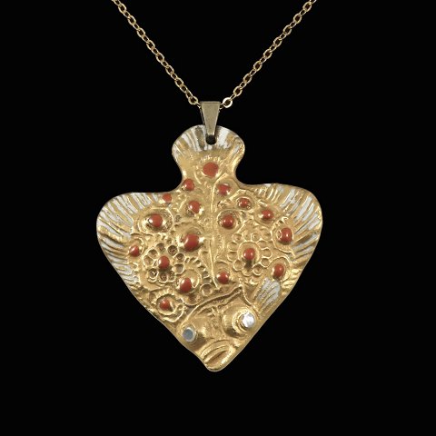 A. Michelsen / Royal Copenhagen. Vedhæng i forgyldt sterlingsølv og porcelæn.