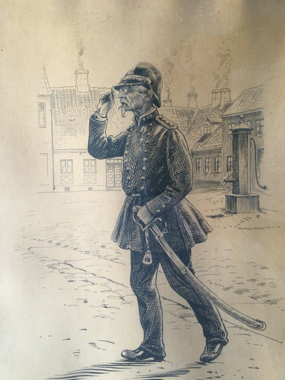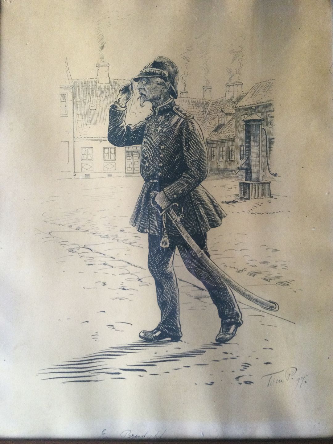 Tegning af Peter Tom-Petersen - "En brandchef 1897"