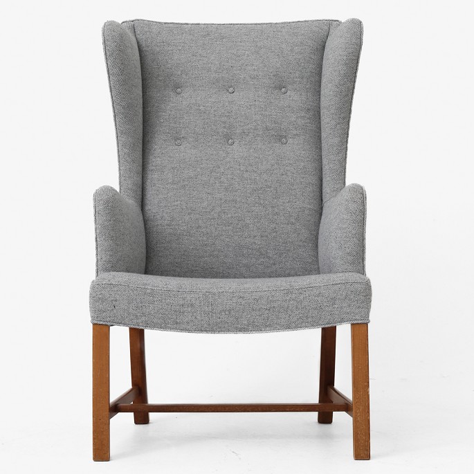 Øreklapstol med stel i kirsebær og nyt betræk i Hallingdal 116. Formgivet i 1945.