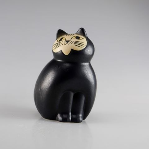 Porcelænsfigur af en sort kat med hvidt ansigt.
