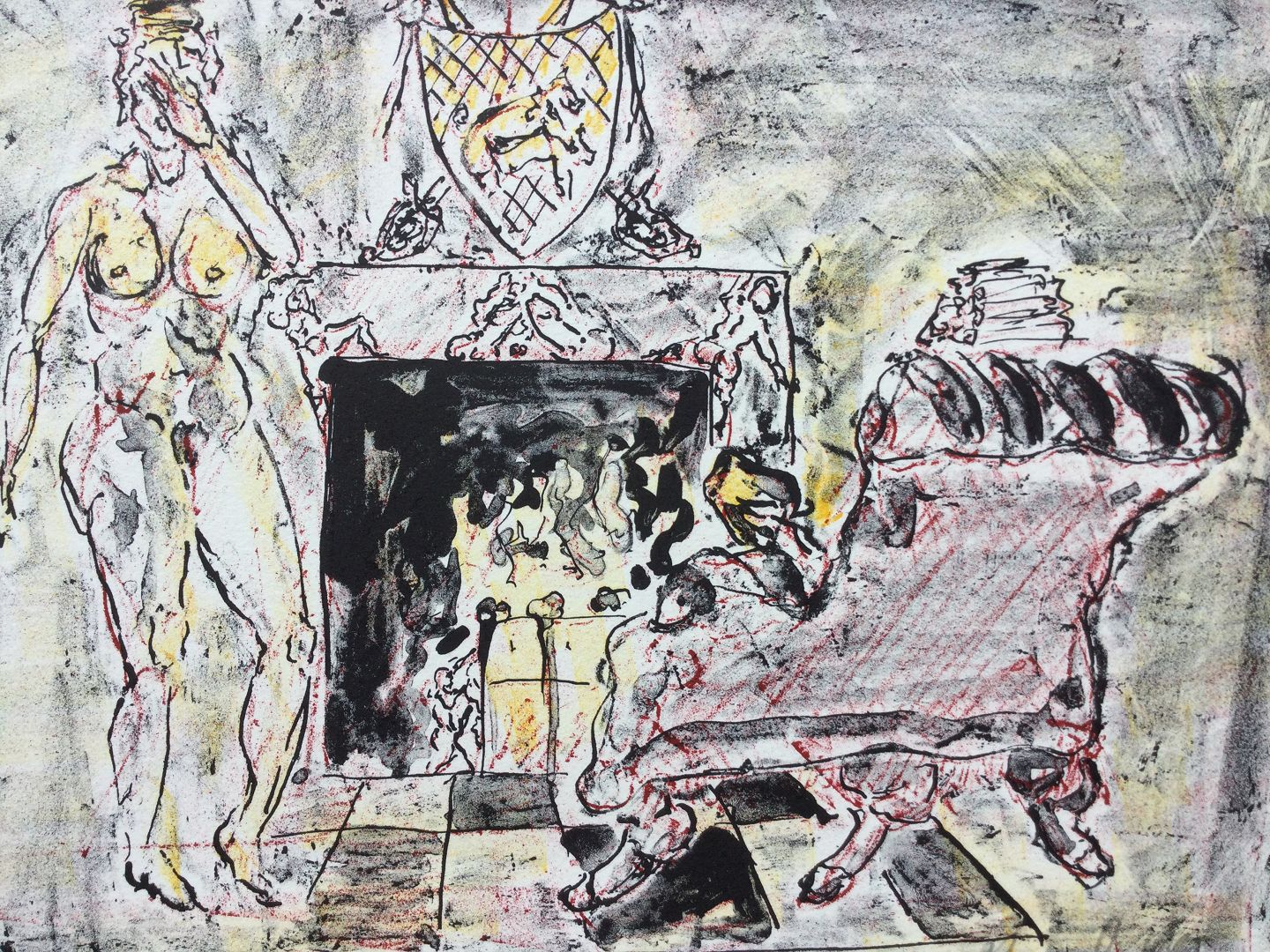 Farvelitografi af Frans Kannik 1998 - Erotisk komposition.