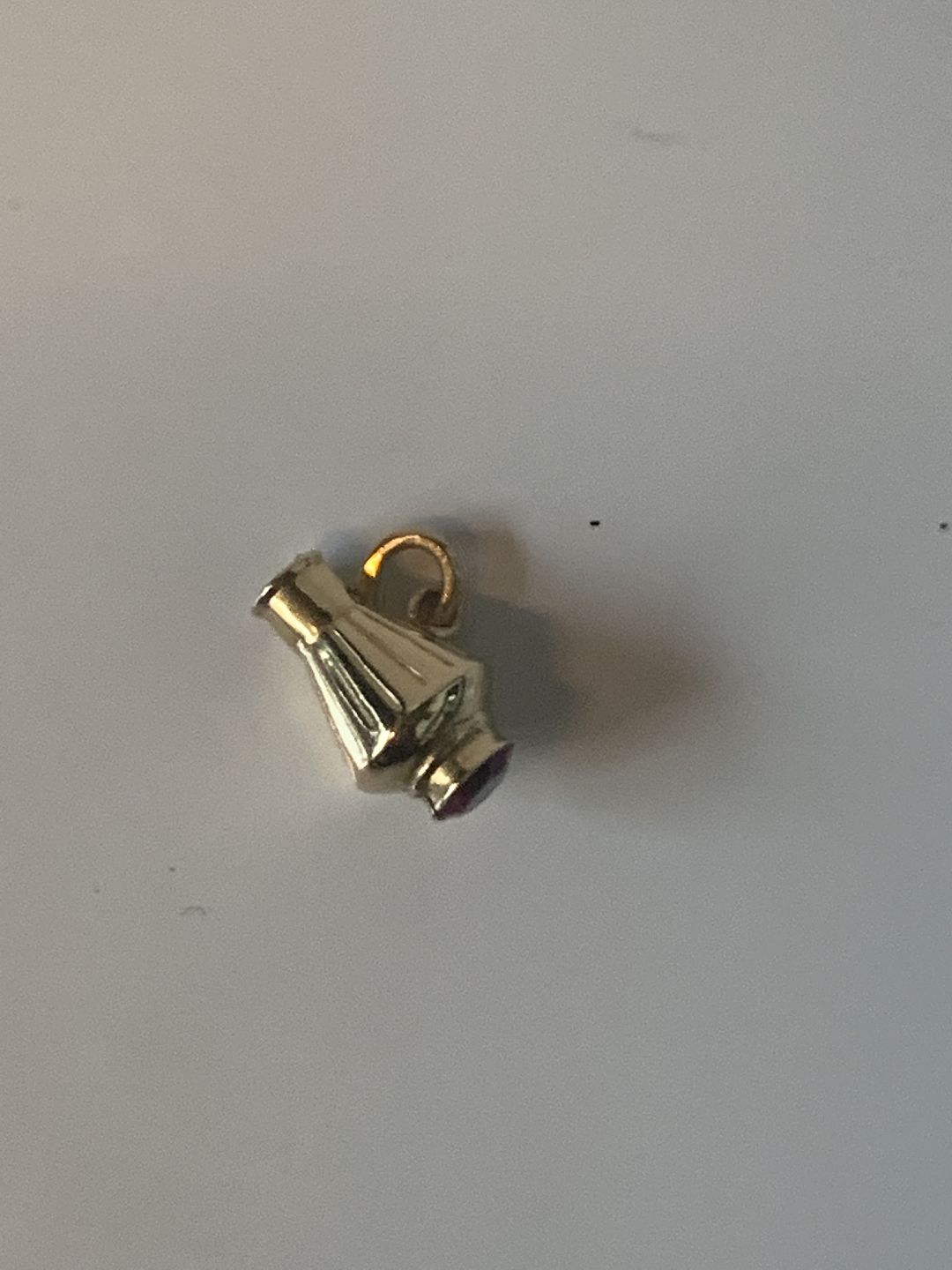 Lygte med rød og klar sten Vedhæng /Charms i 14 karat guld