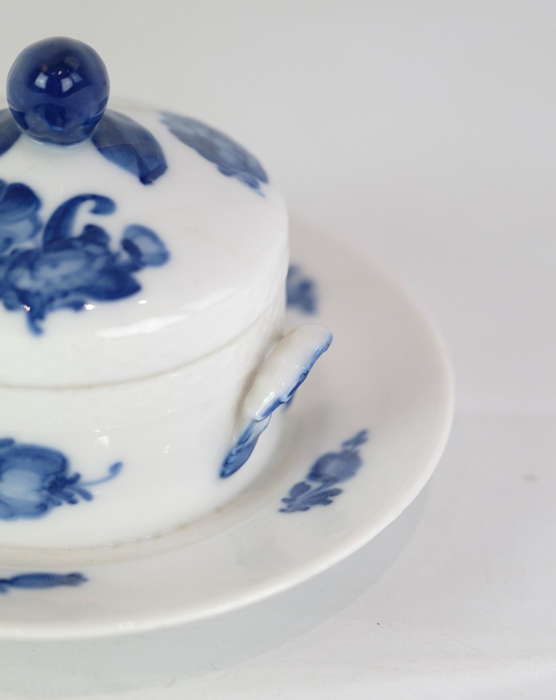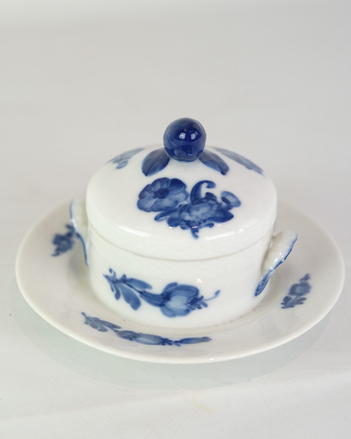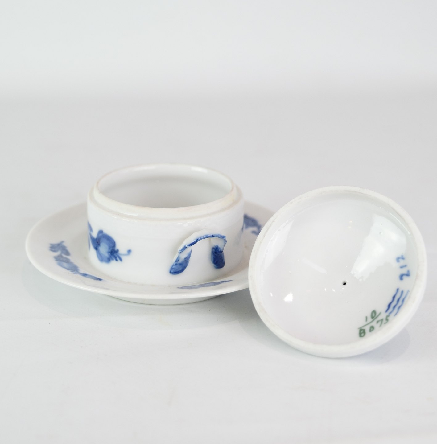 Royal butter dish on fixed foot with patterned blue flower plaited no. 10/8075. 1 sorting.