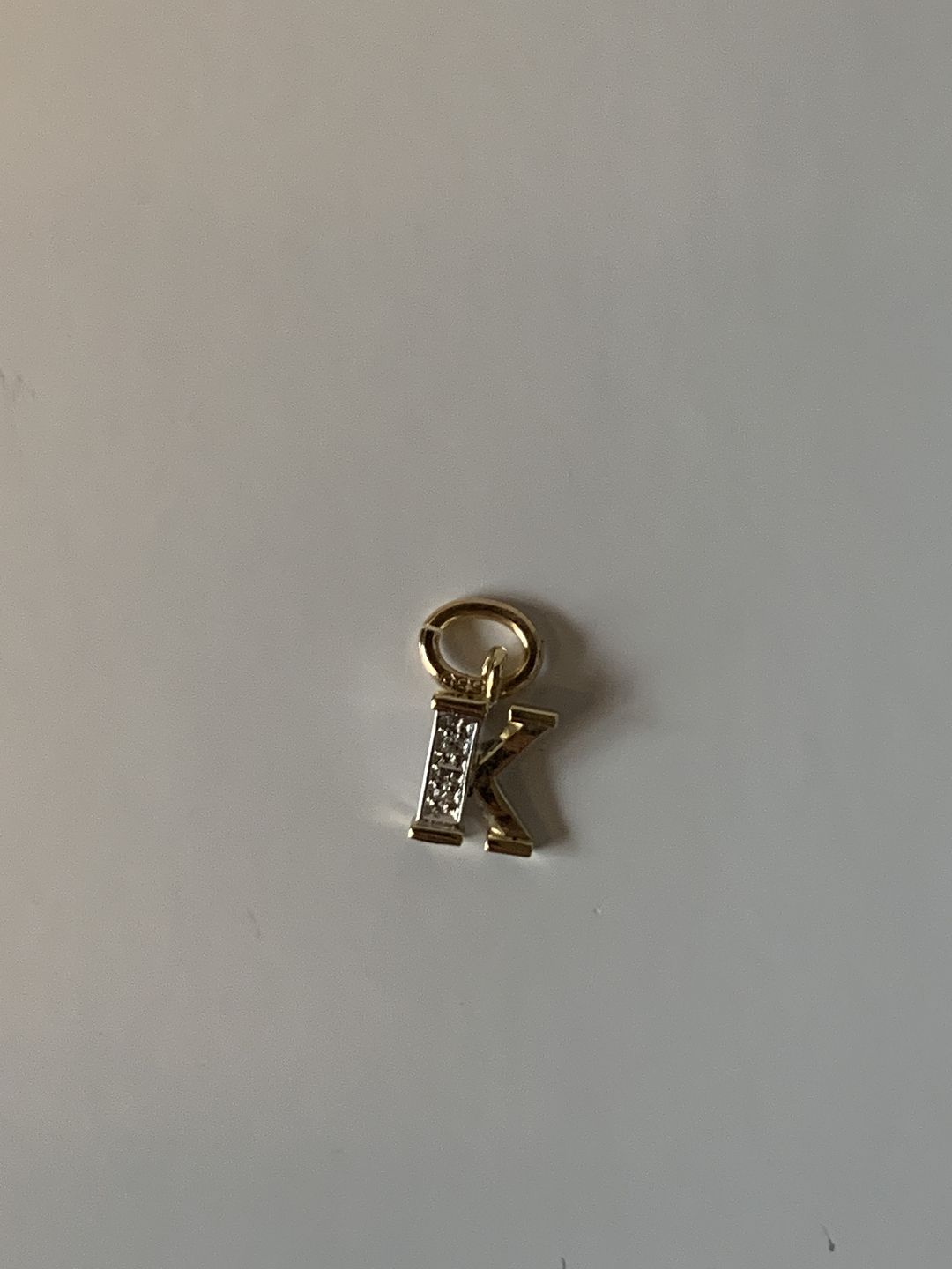 Letter K with diamonds Charms / Pendant in 14 carat Red / White Gold