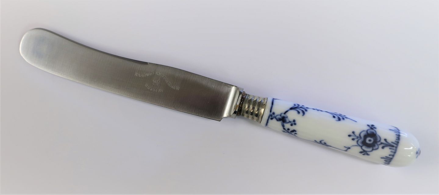 Royal Copenhagen. Blue fluted, plain. Lunch knife. Remains of gold on shaft. Length 20.5 cm.