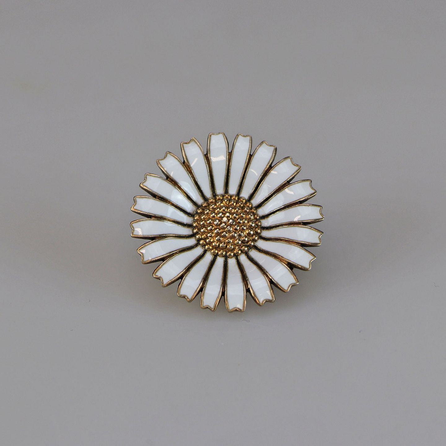 Marguerite broche i forgyldt sterling sølv og hvid emalje.