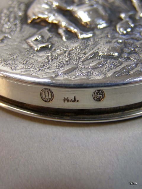 Pudderdåse i Sølv 1947 H: 1 cm. D: 7 cm.