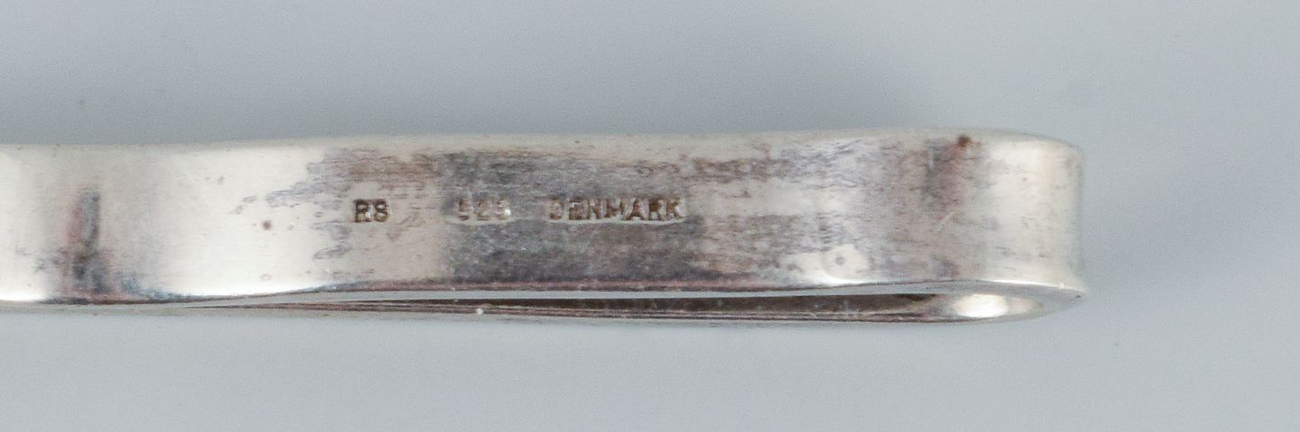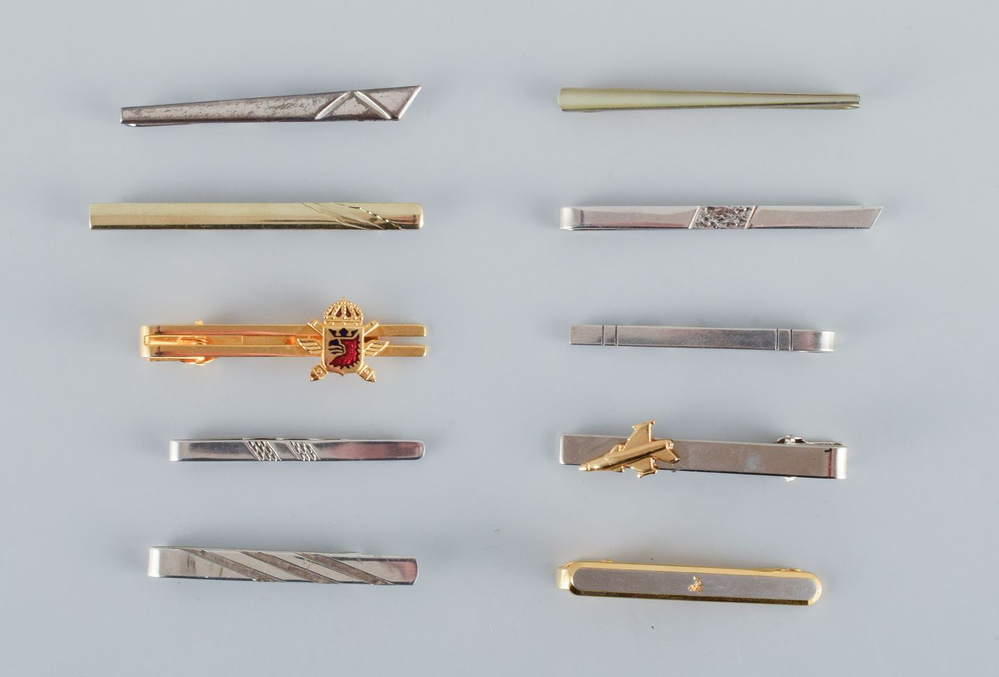 A collection of ten Danish tie pins in sterling silver and gold-plated metal.