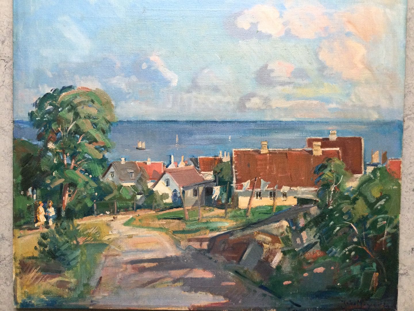 Maleri af Johannes Meyer Andersen - Vue ud over by på Bornholm.