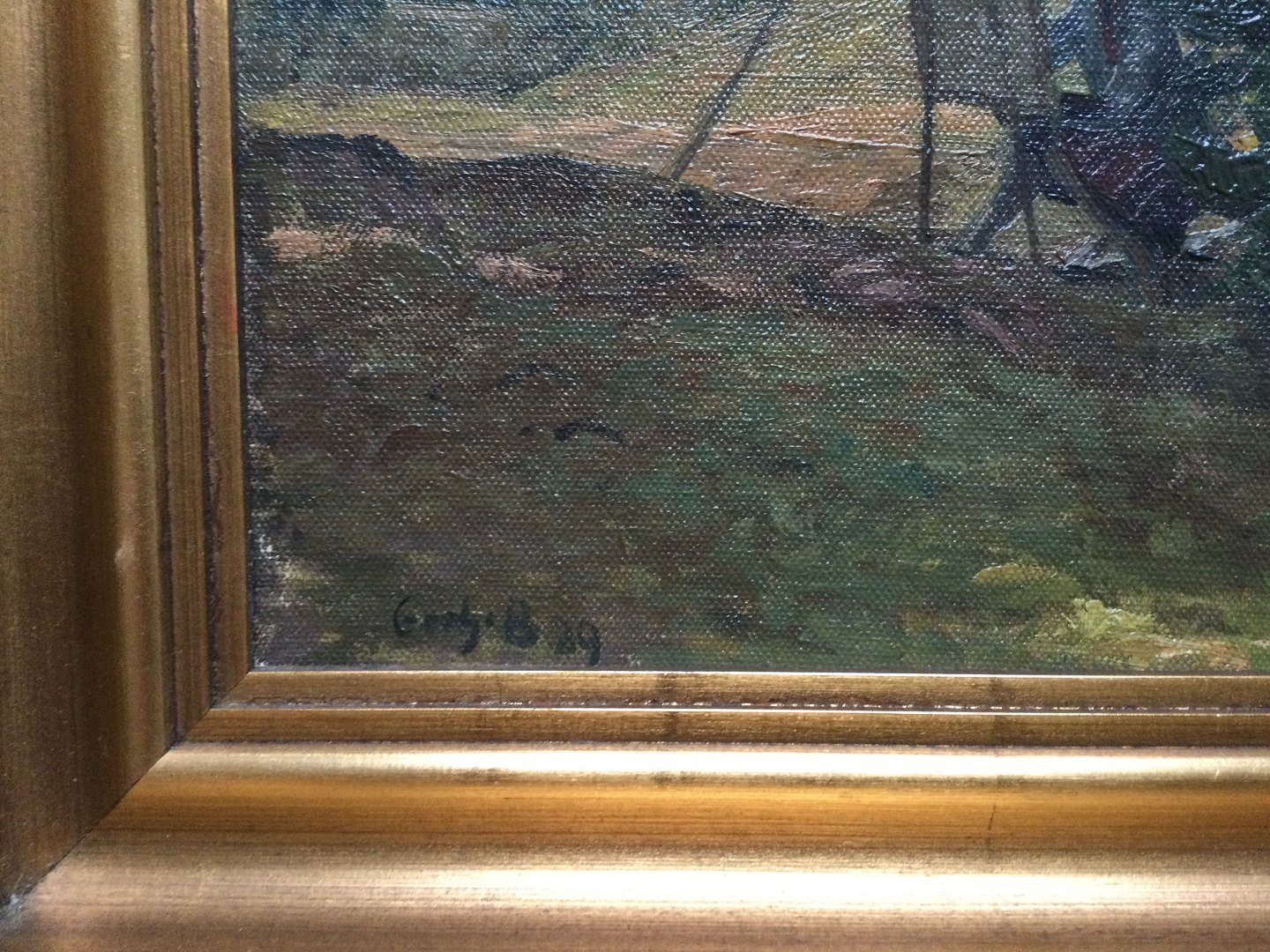 Olie på lærred monteret på plade.