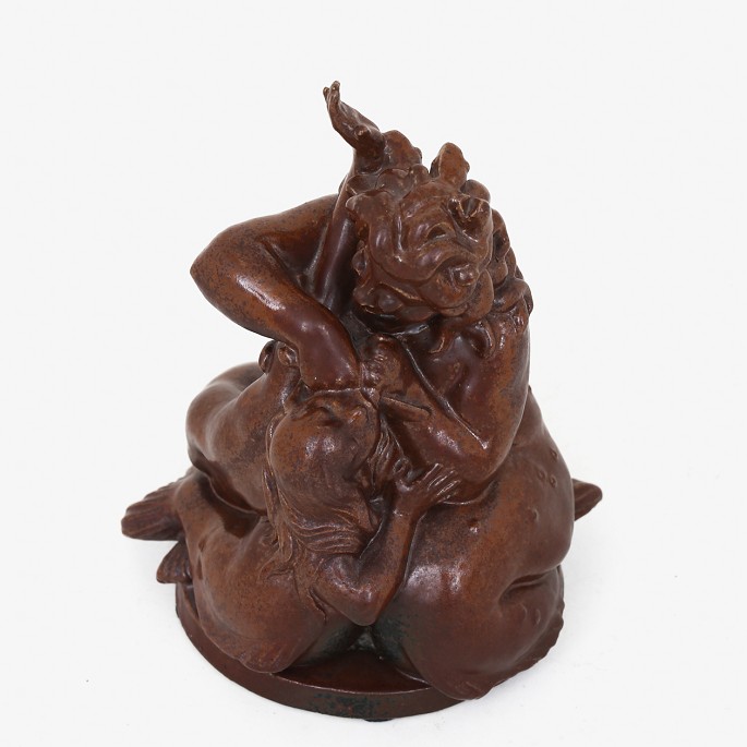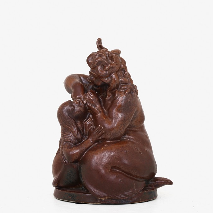 Skulptur i glaseret stentøj. "Havheksen og Den Lille Havfrue" fra cirka 1940. Signeret.