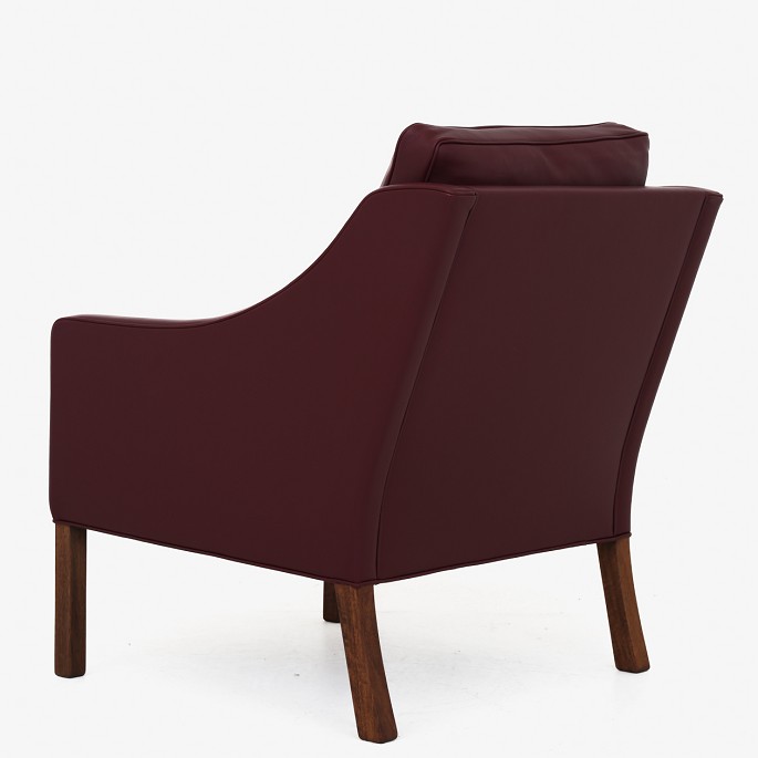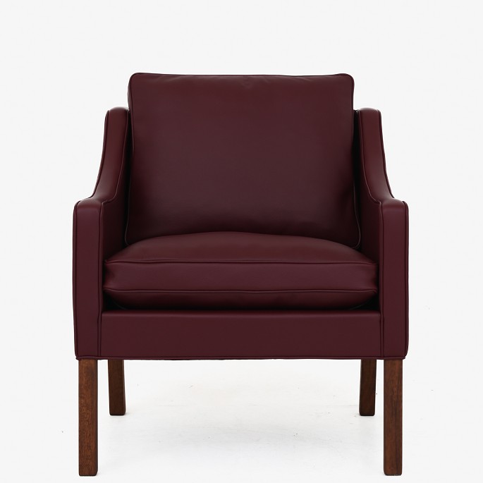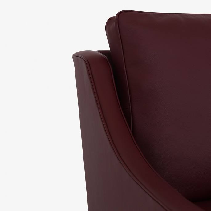 BM 2207 - Nybetrukket lænestol i 'Prestige'-semi-anilin-læder (farve: Wine Red). KLASSIK tilbyder stolen i tekstil eller læder efter eget valg.