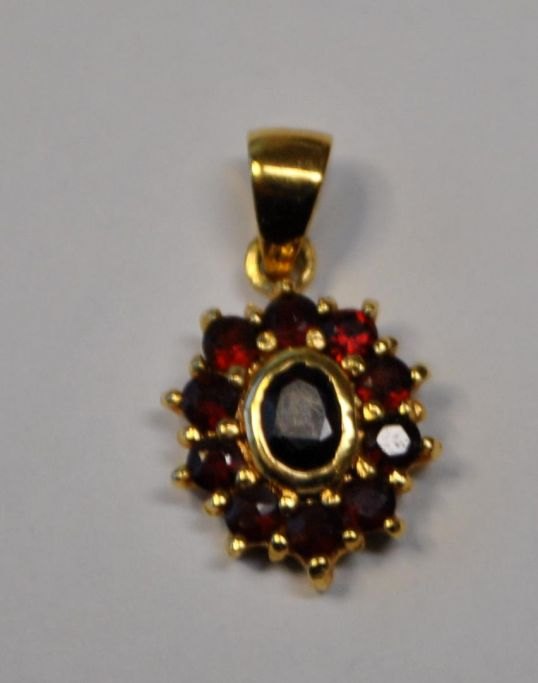 Garnet pendant in gilded sterling silver, 20th century. Stamped. H.: 2.2, cm.