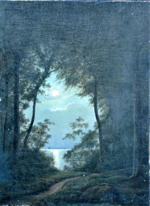 Danish artist (19th century): Moonlight by the sea. Oil on canvas. Signed H. Hiort 1881. 57 x 41 cm.
