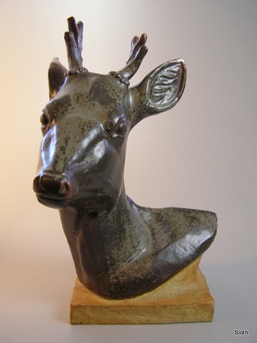 B&G 7002 Hjortehoved i stentøj Af Karl Otto Johansen H: 44 cm.