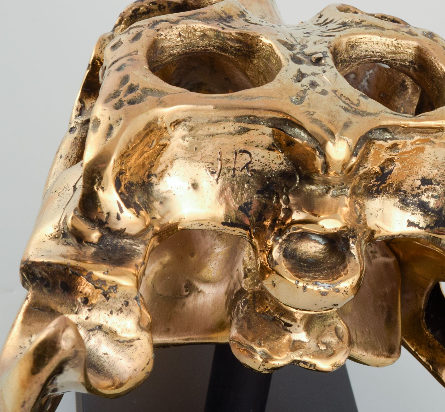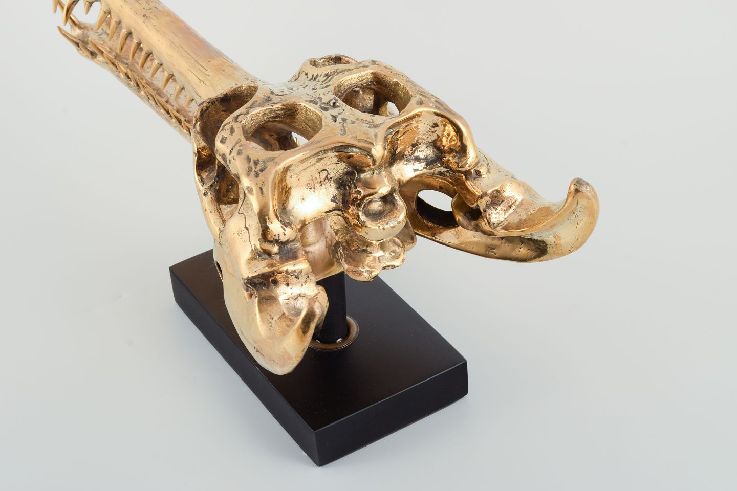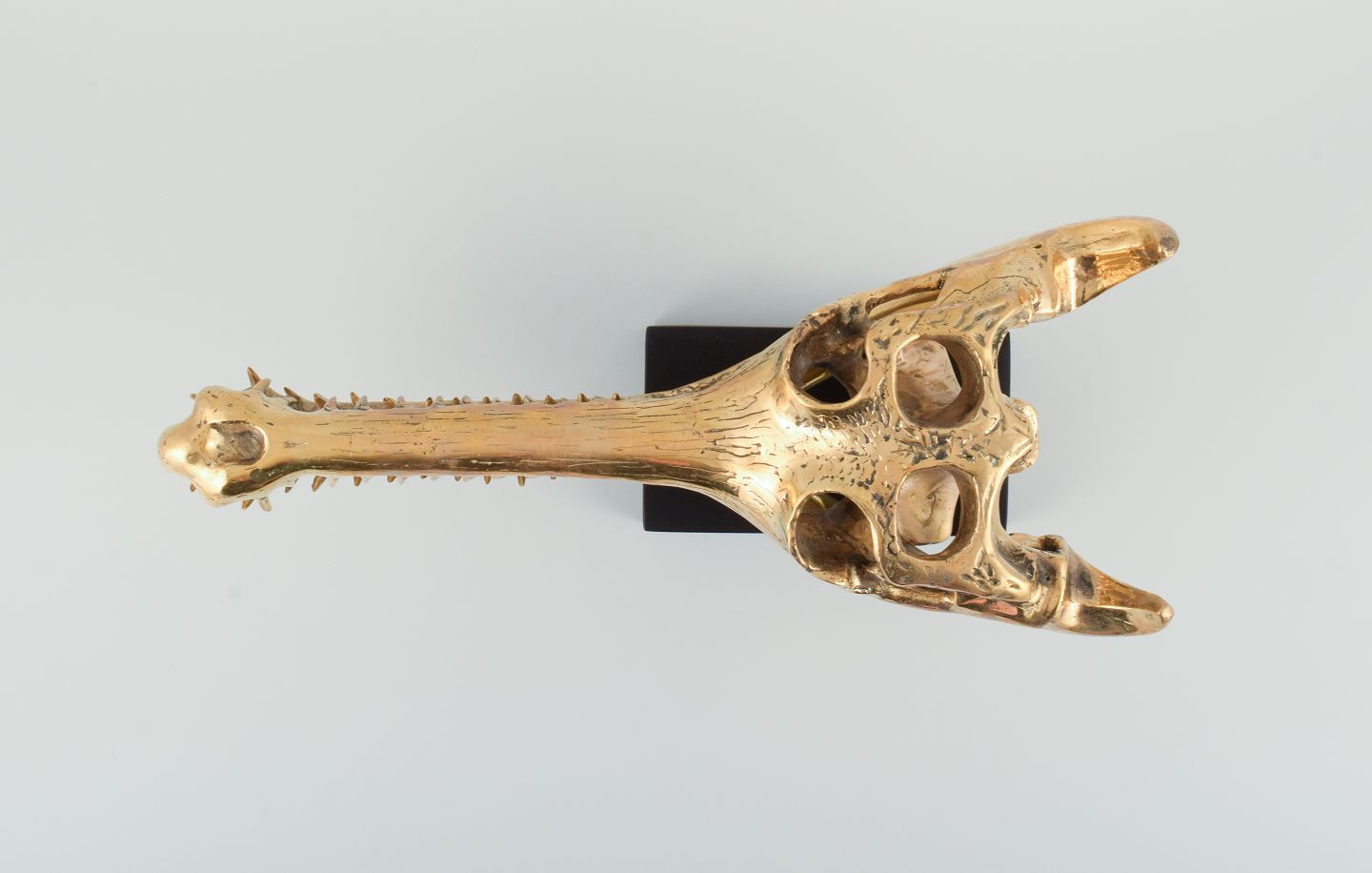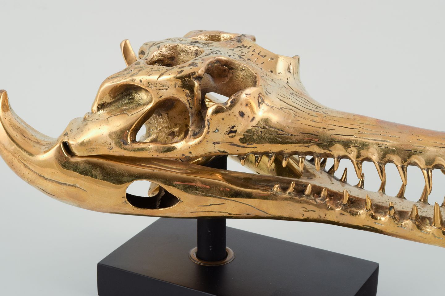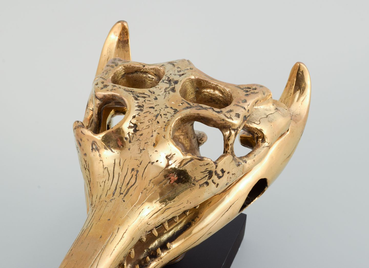 Unknown French sculptor. Large sculpture in gilded metal - modern design in the shape of a crocodile skull.