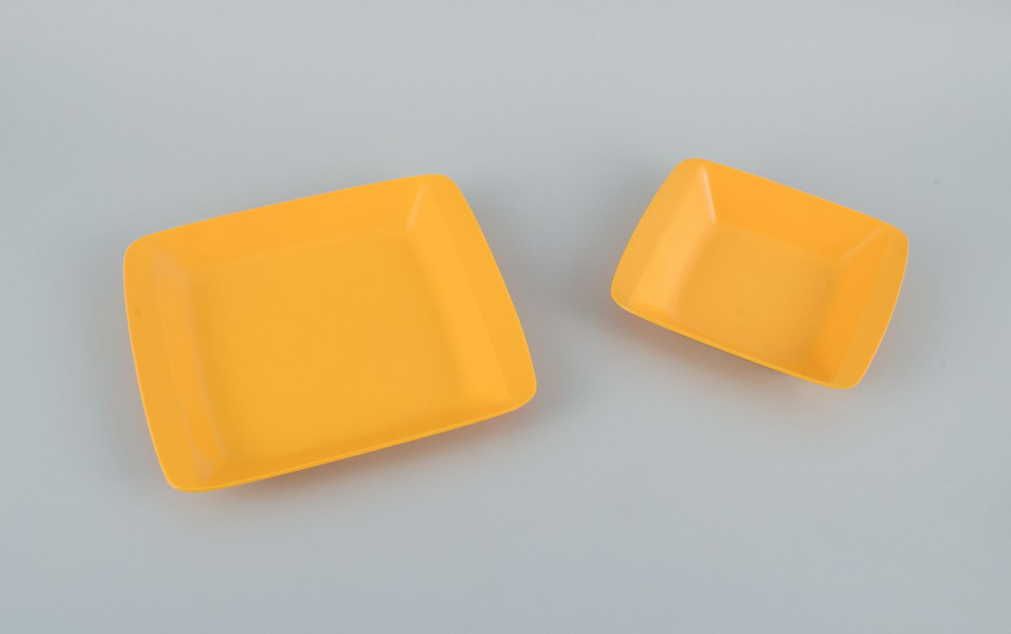 Fiskars, Finland. Fiskamin. 12 retro tallerkner i gult melamin - To størrelser.