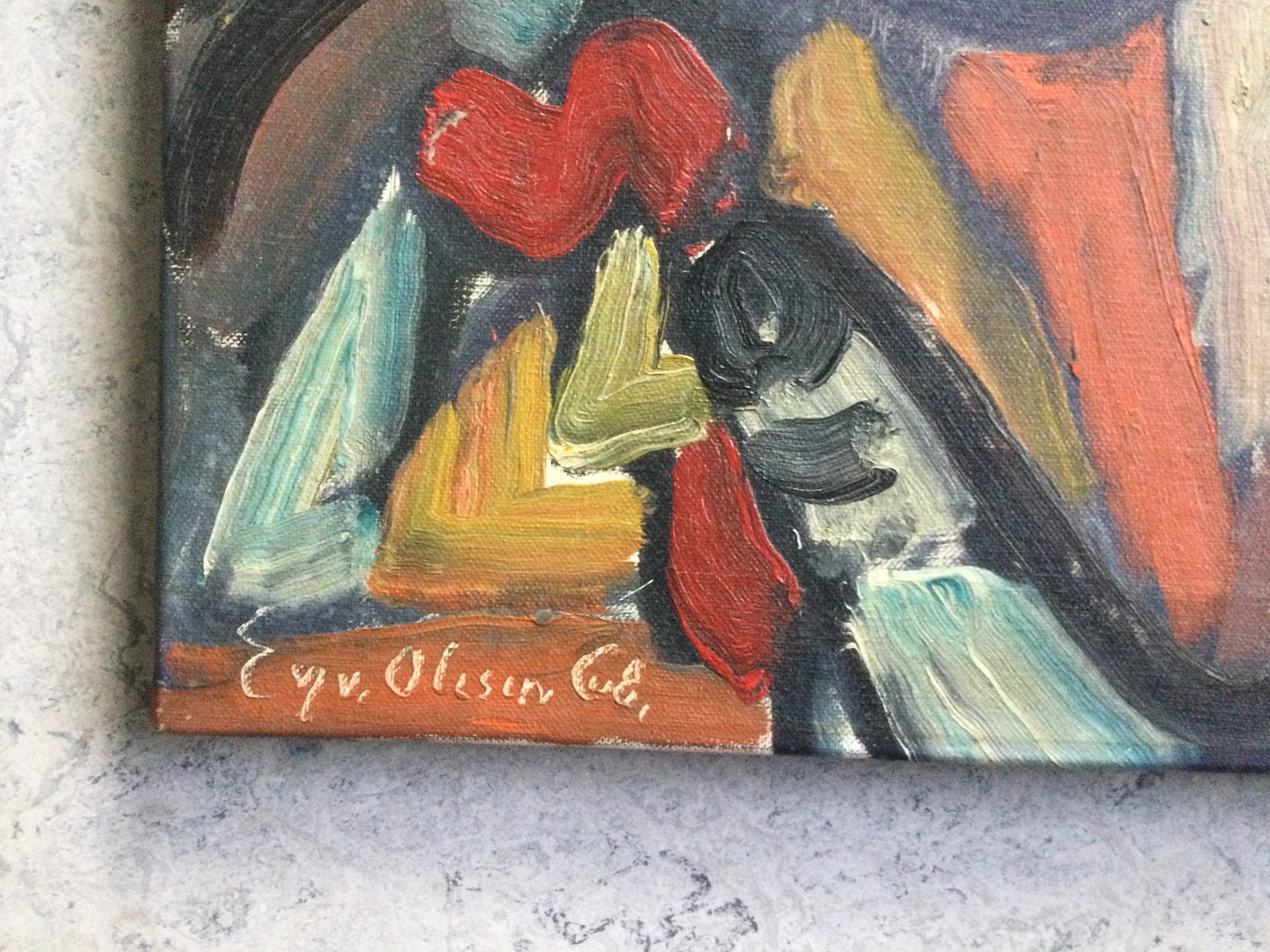 Maleri af Eyvind Olesen - Komposition med fjerkræ 1968.