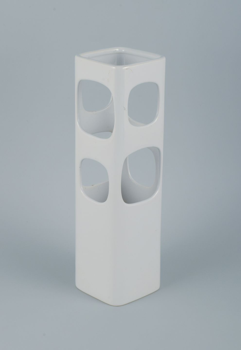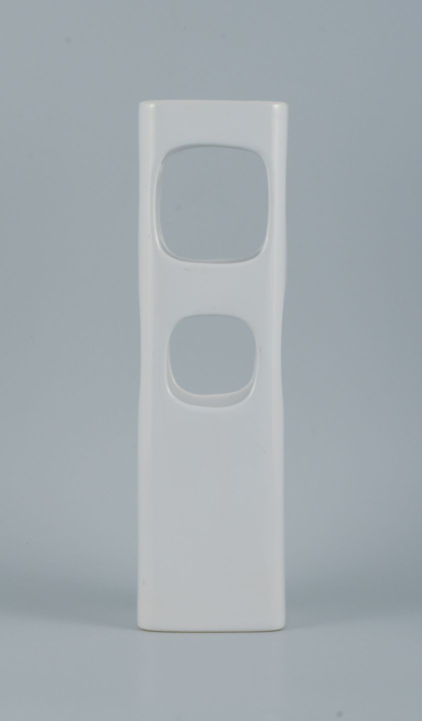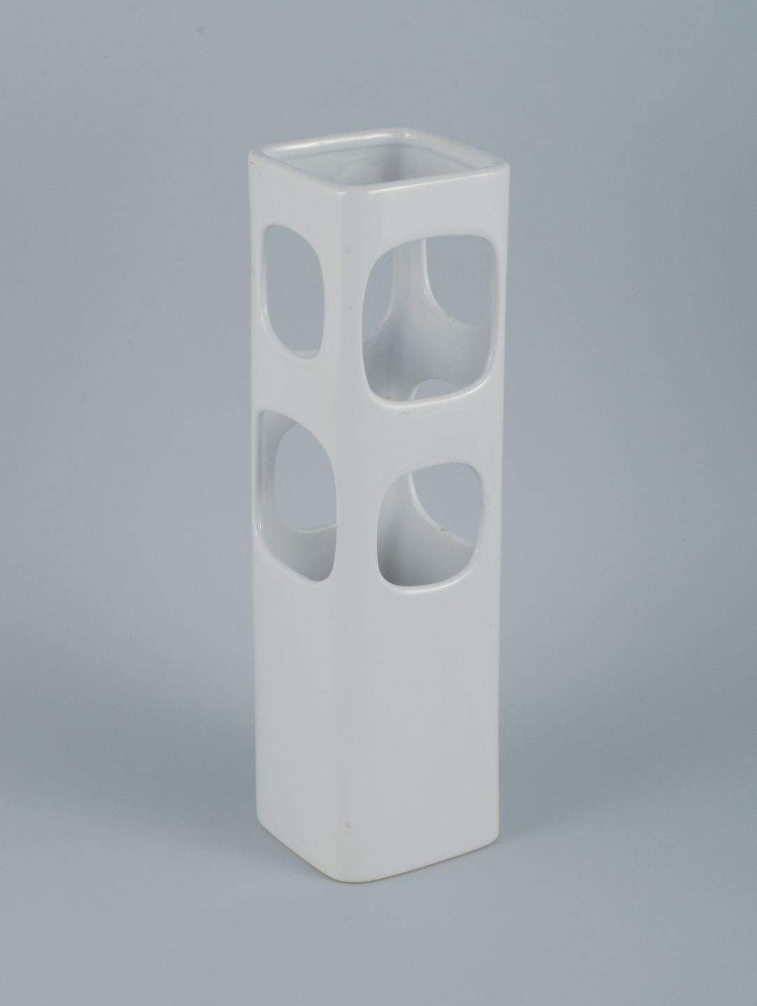 Europæisk studiokeramiker. Unikavase med otte huller i hvid glasur.