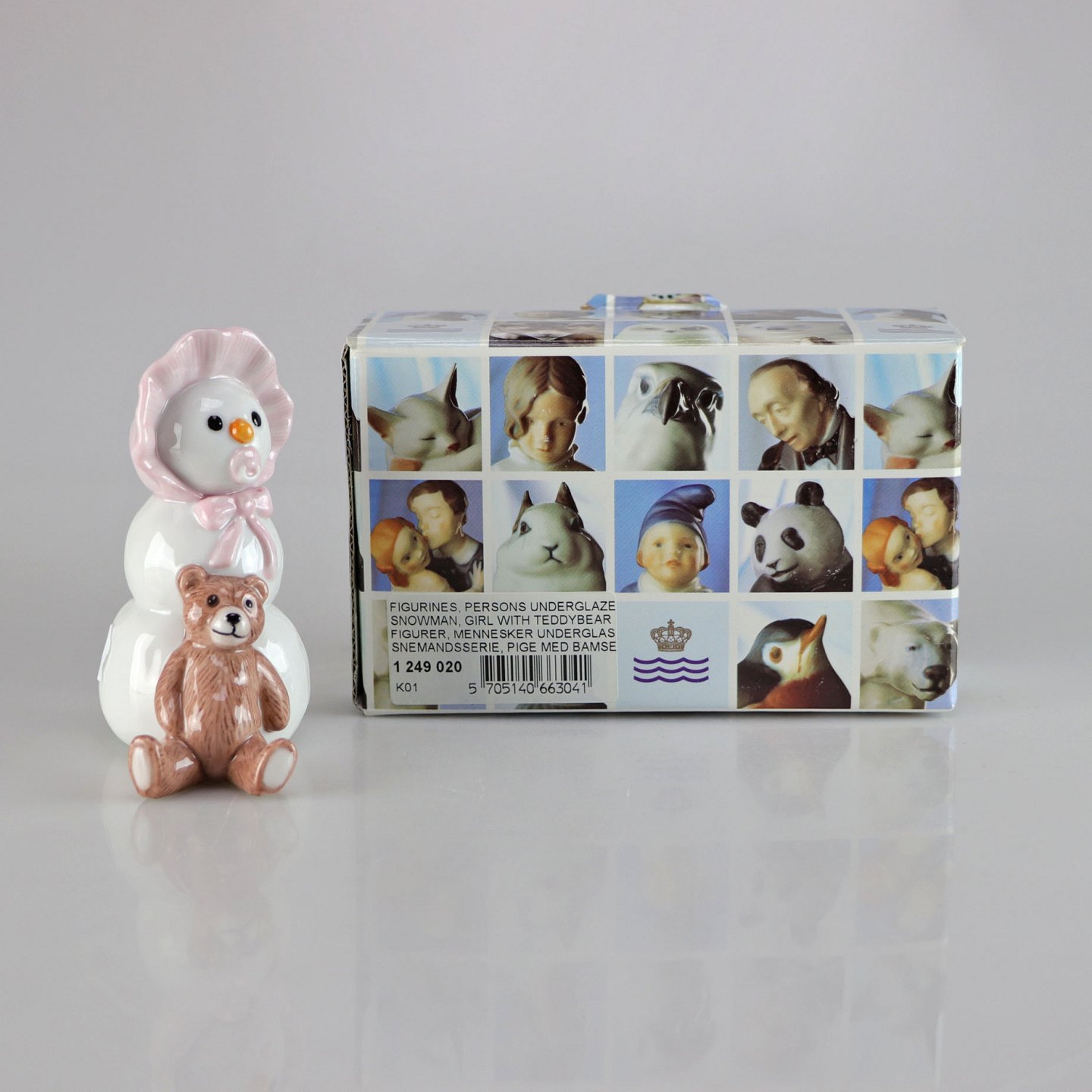 Kgl. figur i porcelæn af pige med bamse nr. 020 fra Snemandsserien