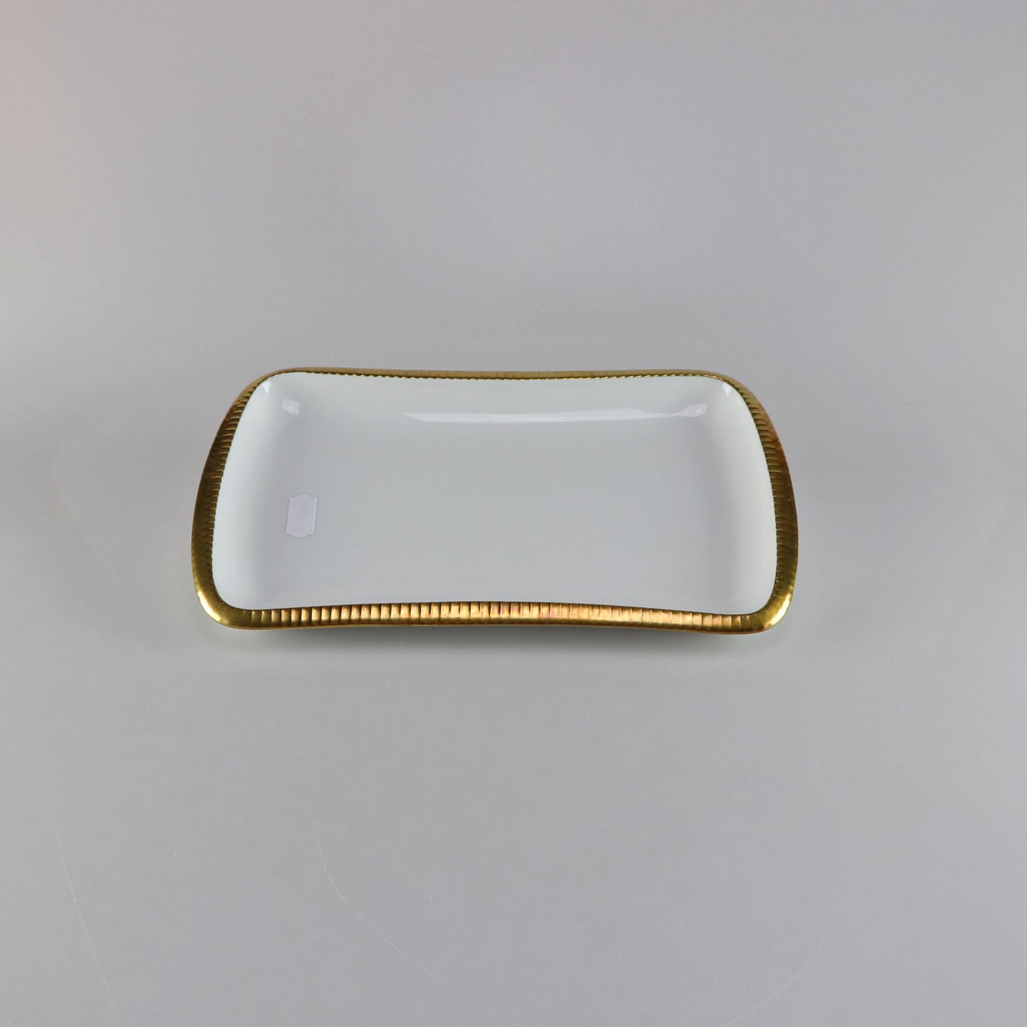 Serveringsfad i glat hvidt porcelæn med gylden kant