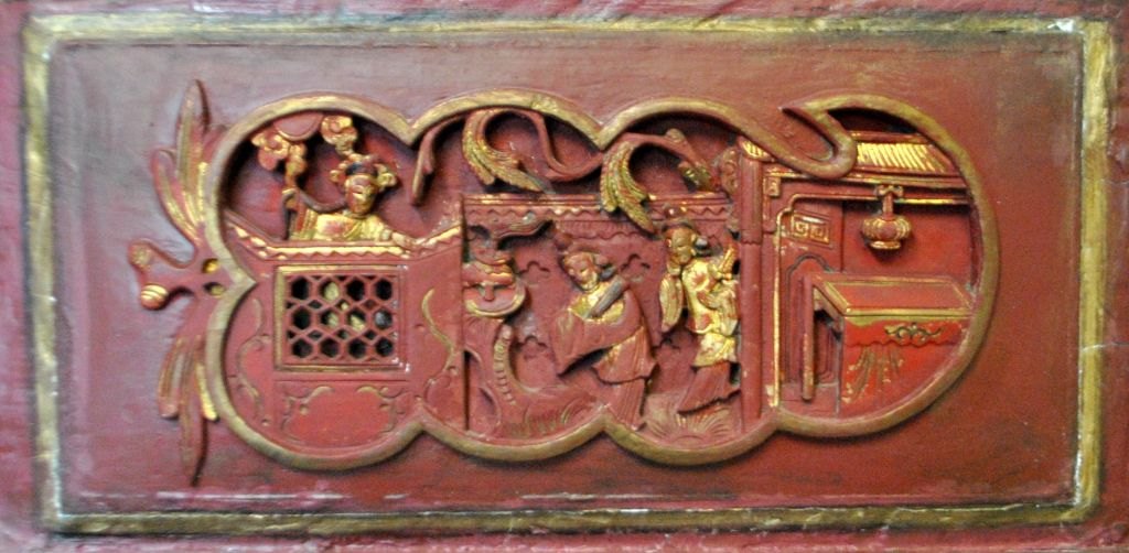 Par antikke kinesiske udskårne paneler i træ, 19. årh.