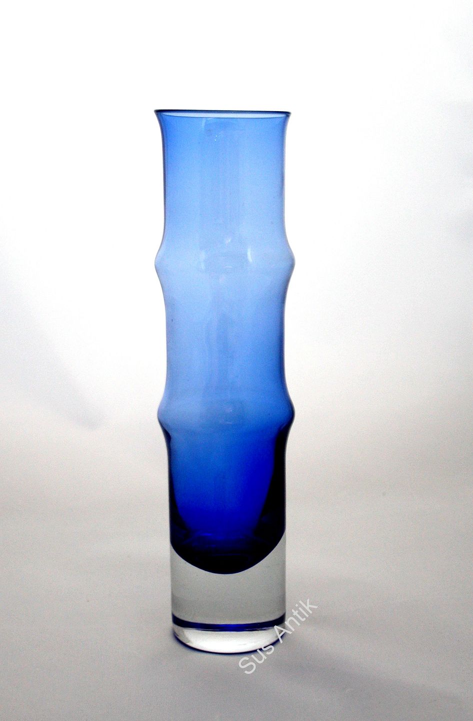 Åseda, Sweden, Bambu vase blå. Designet af Bo Bergström i midten af 1960'erne, inspireret af bambus. Højde 24 cm. Diameter 6 cm. Pris: 375 kr.
