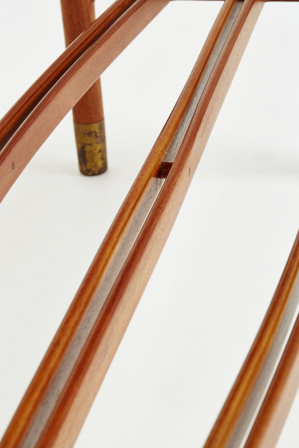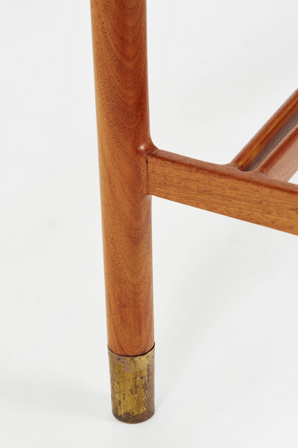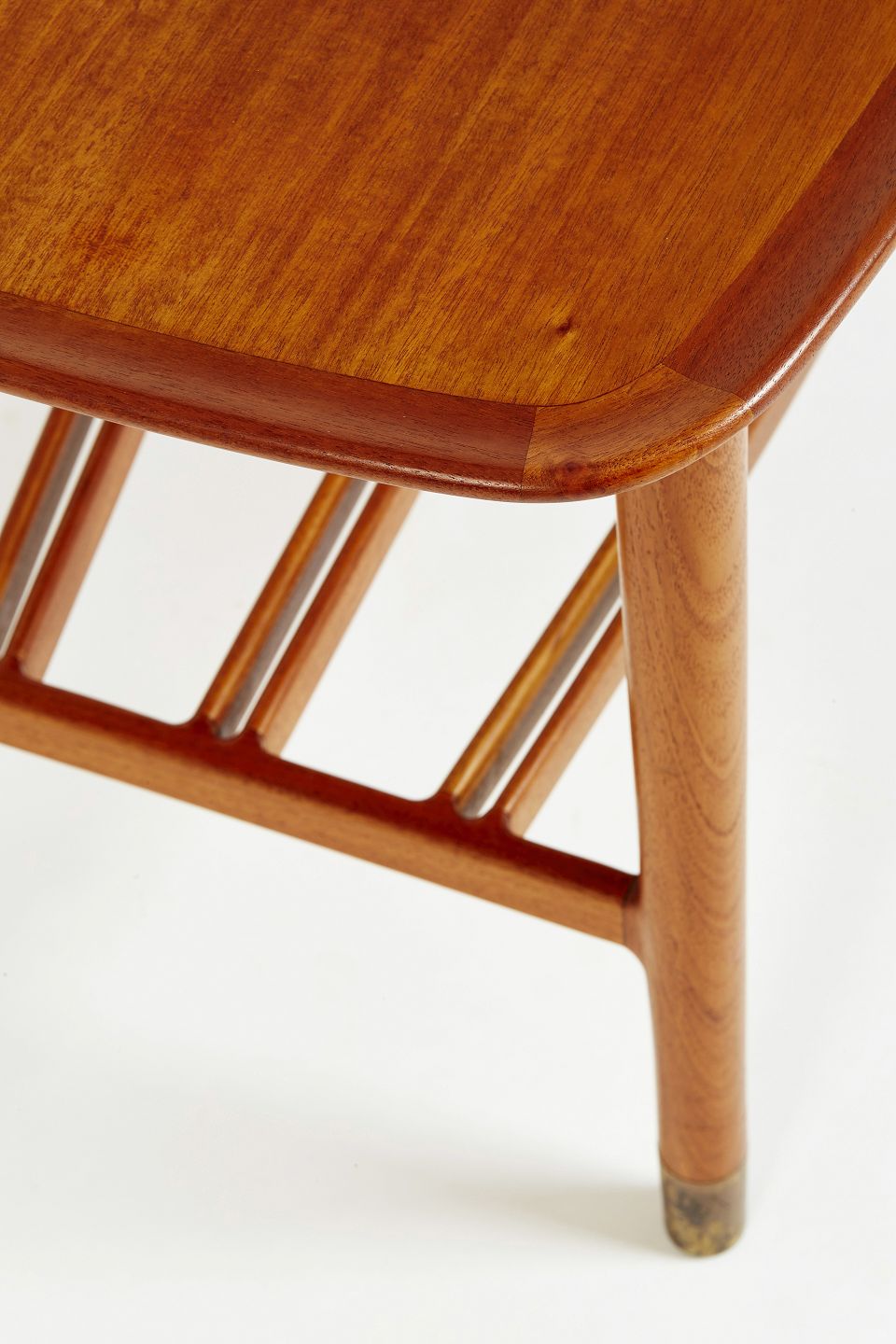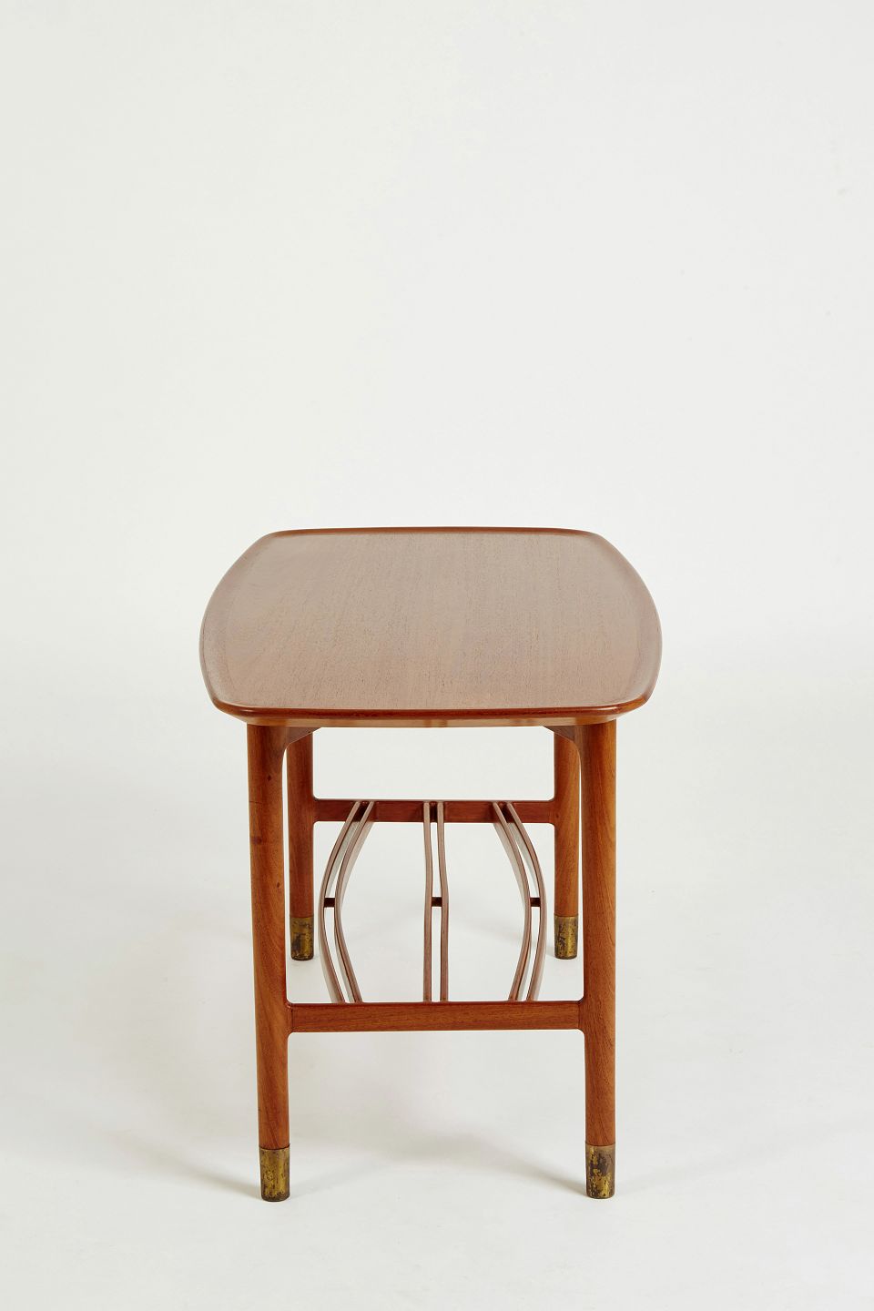 Sofabord af Cubamahogni med Kehlet kant. Sko af patineret messing. Underliggende tidskriftshylde at 3 massive tværpinde hvoraf de to yderste er let buet. Arkitektegnet /snedker arbejde udført sidst i 30'erne eller først i 40'erne.