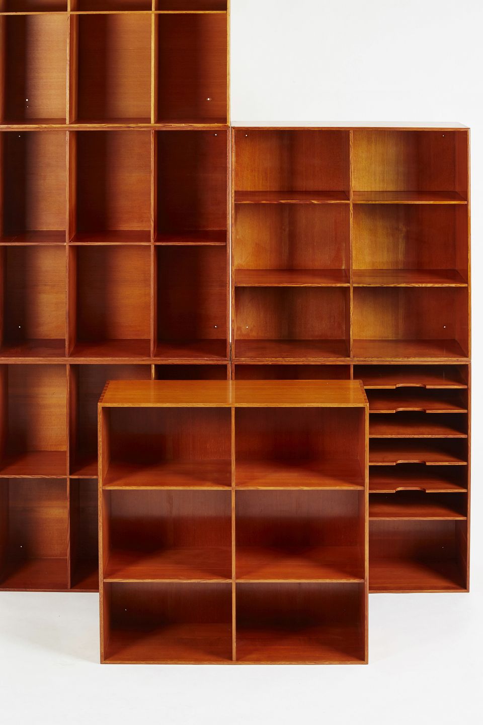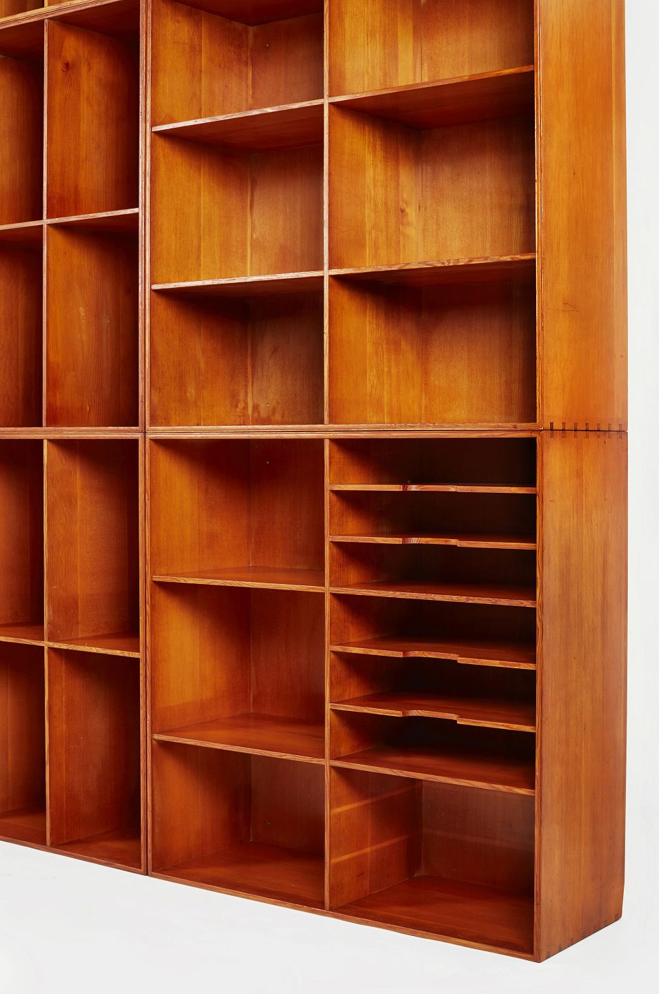 Morgens Koch. Six shelving sections of solid Oregon pine with shelf division Each module measures: H/W 76 x 76 cm. D. 28 cm. Designed in 1932 and manufactured by Rud Rasmussen snedkerier.