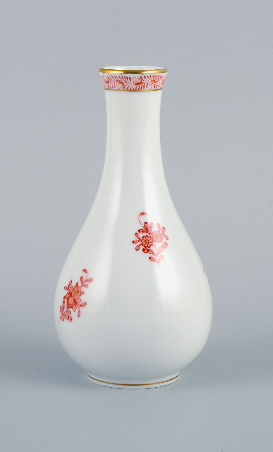 Herend, Ungarn, porcelænsvase, håndmalet med orange blomster.