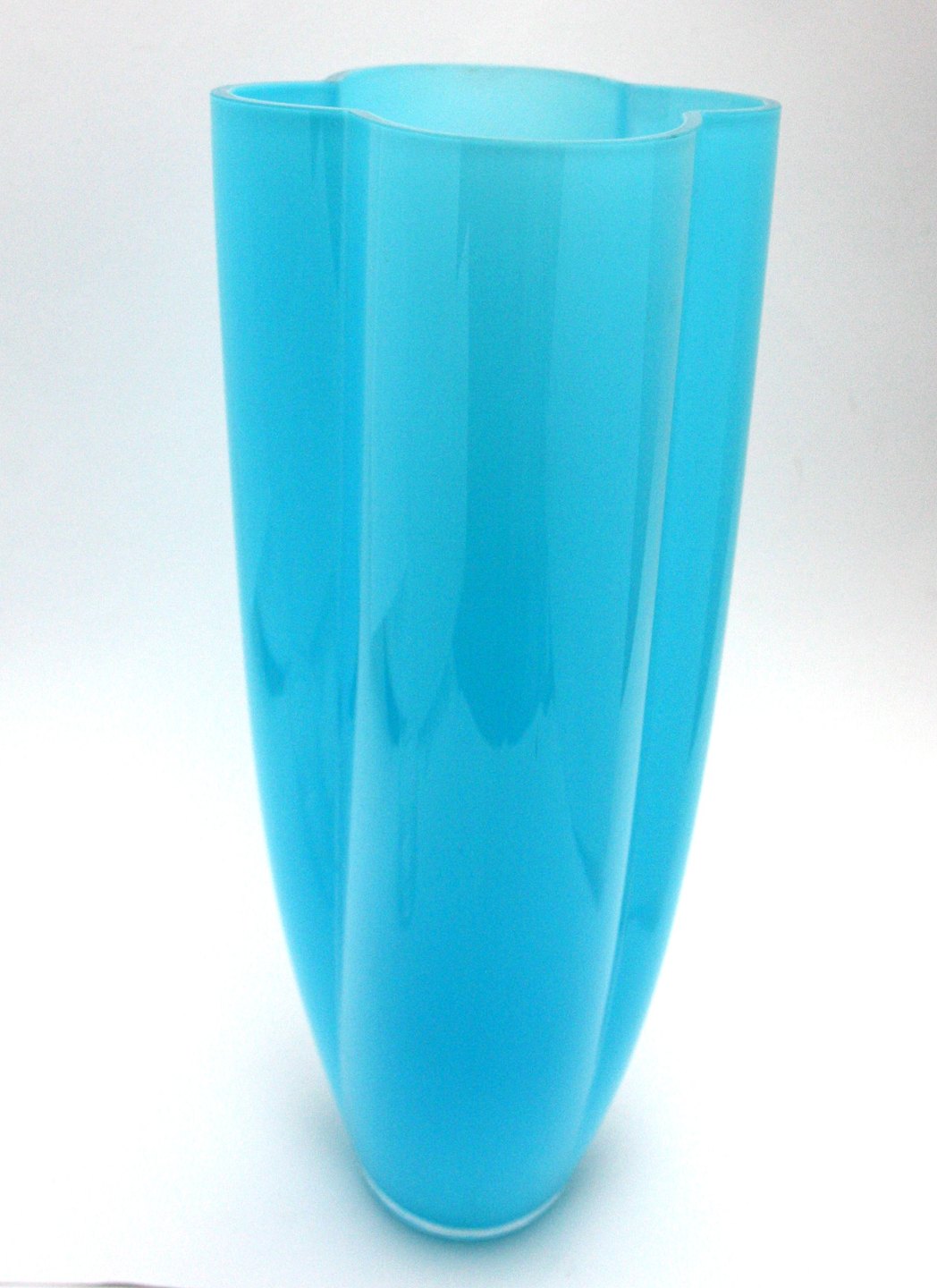 Holmegaard, Gardenia, Høj turkis opal vase. Designet af Anja Kjær i 1990. Højde 33,5 cm. Bredde 16 cm. Længde 21,5 cm. I sortering. Pris: 1.050 kr.