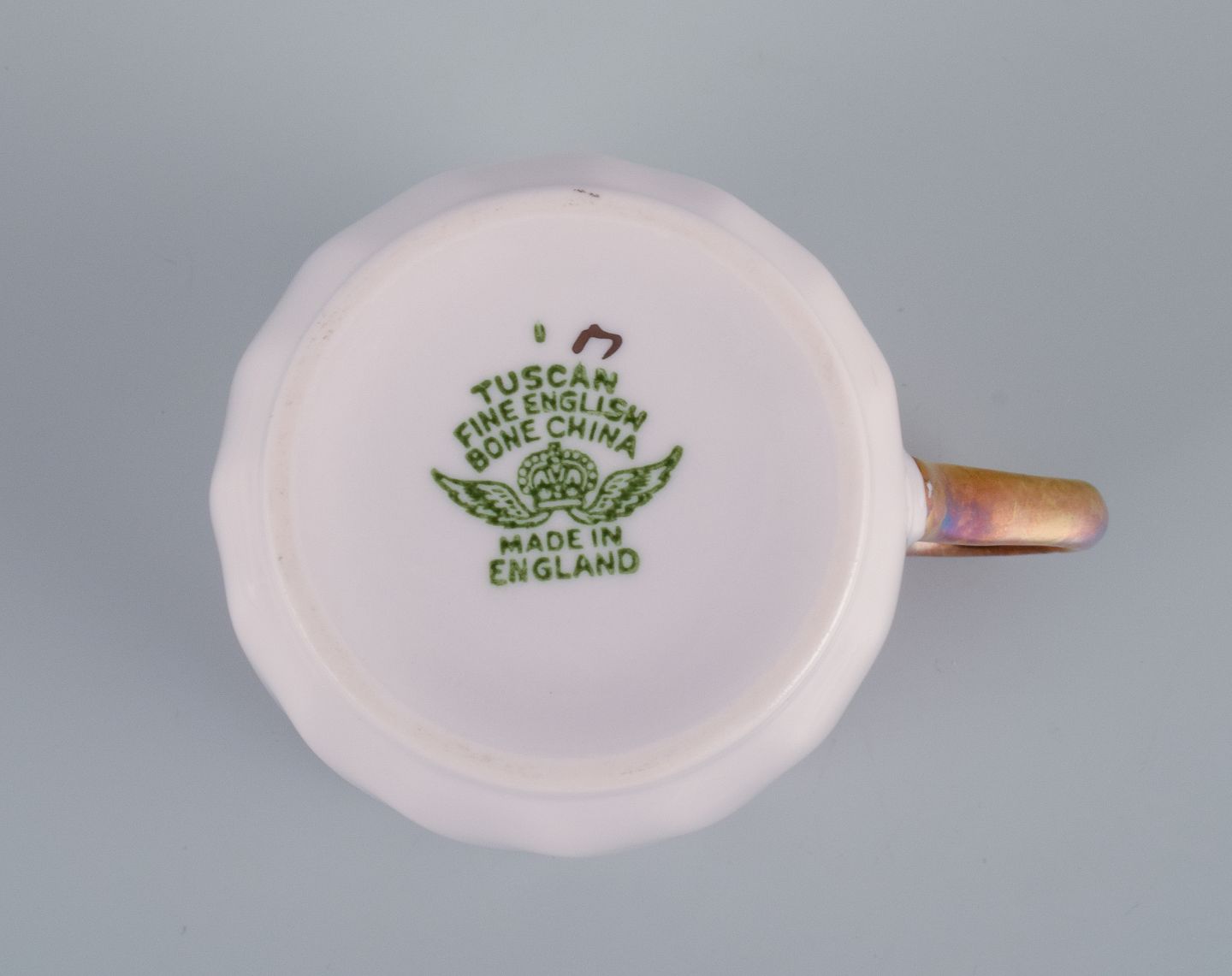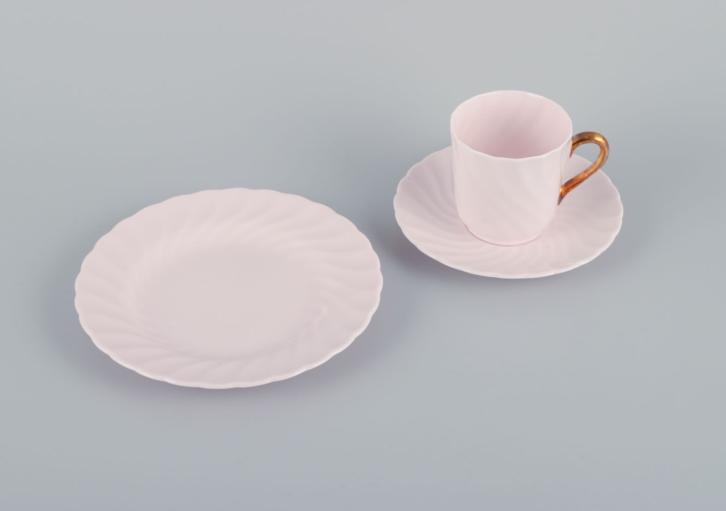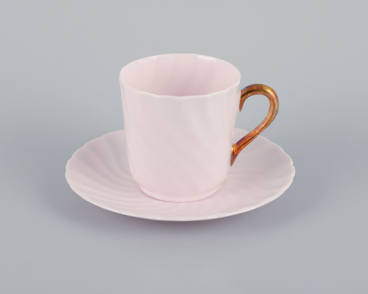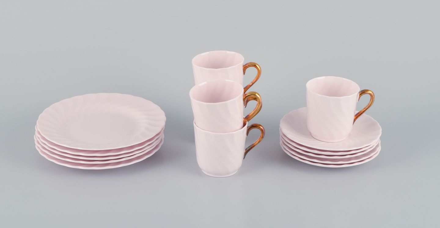 Tuscan, England, five-person coffee service in pink porcelain with gold decoration.