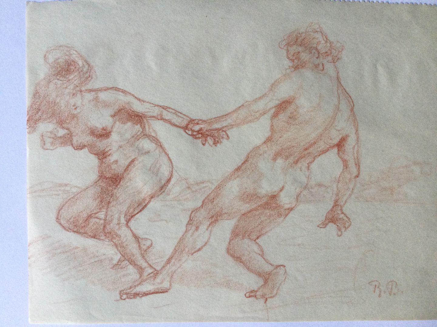 Rødkridt på papir.