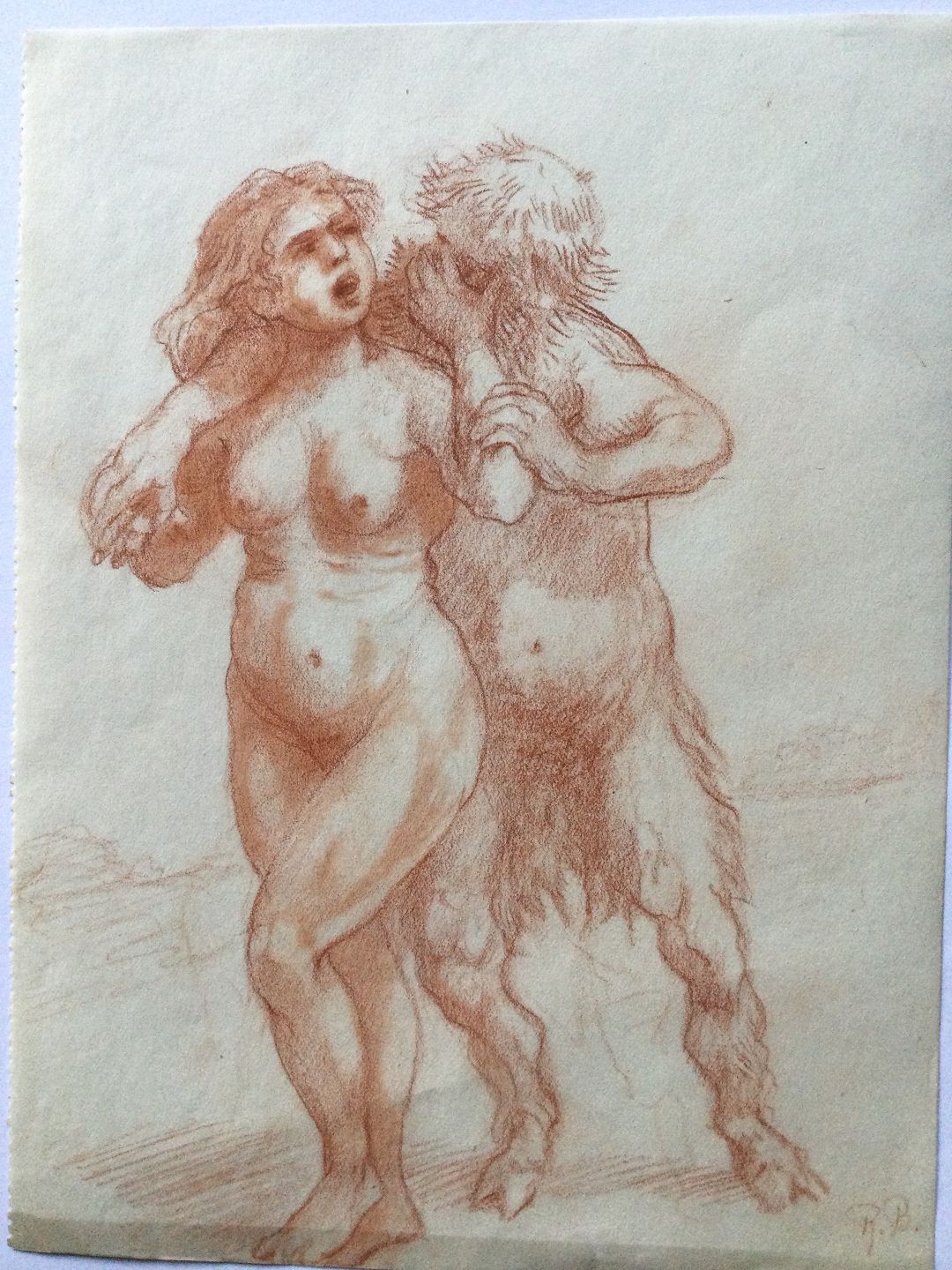 Tegning af Robert Büchtger - Nøgen kvinde og trold.