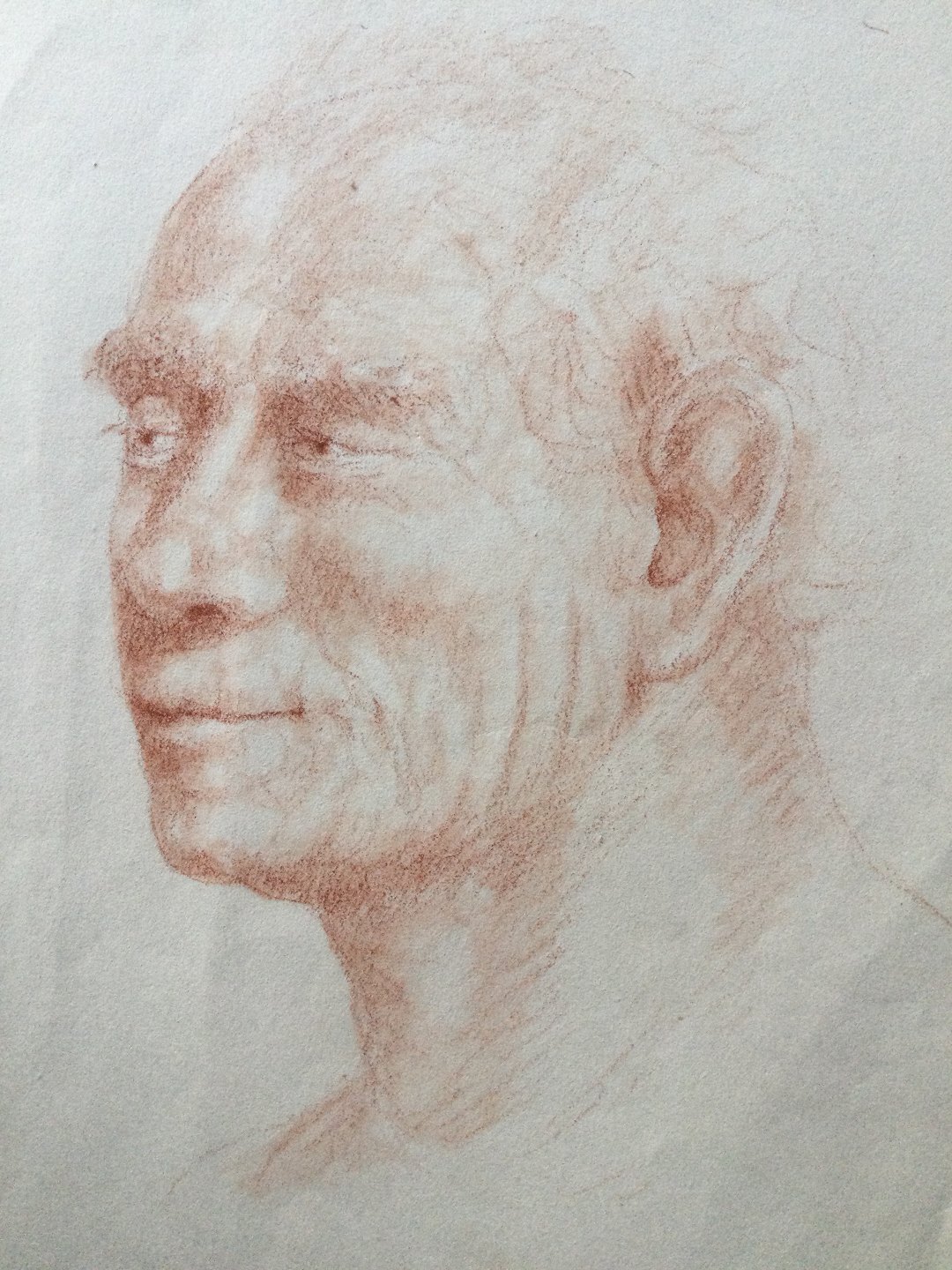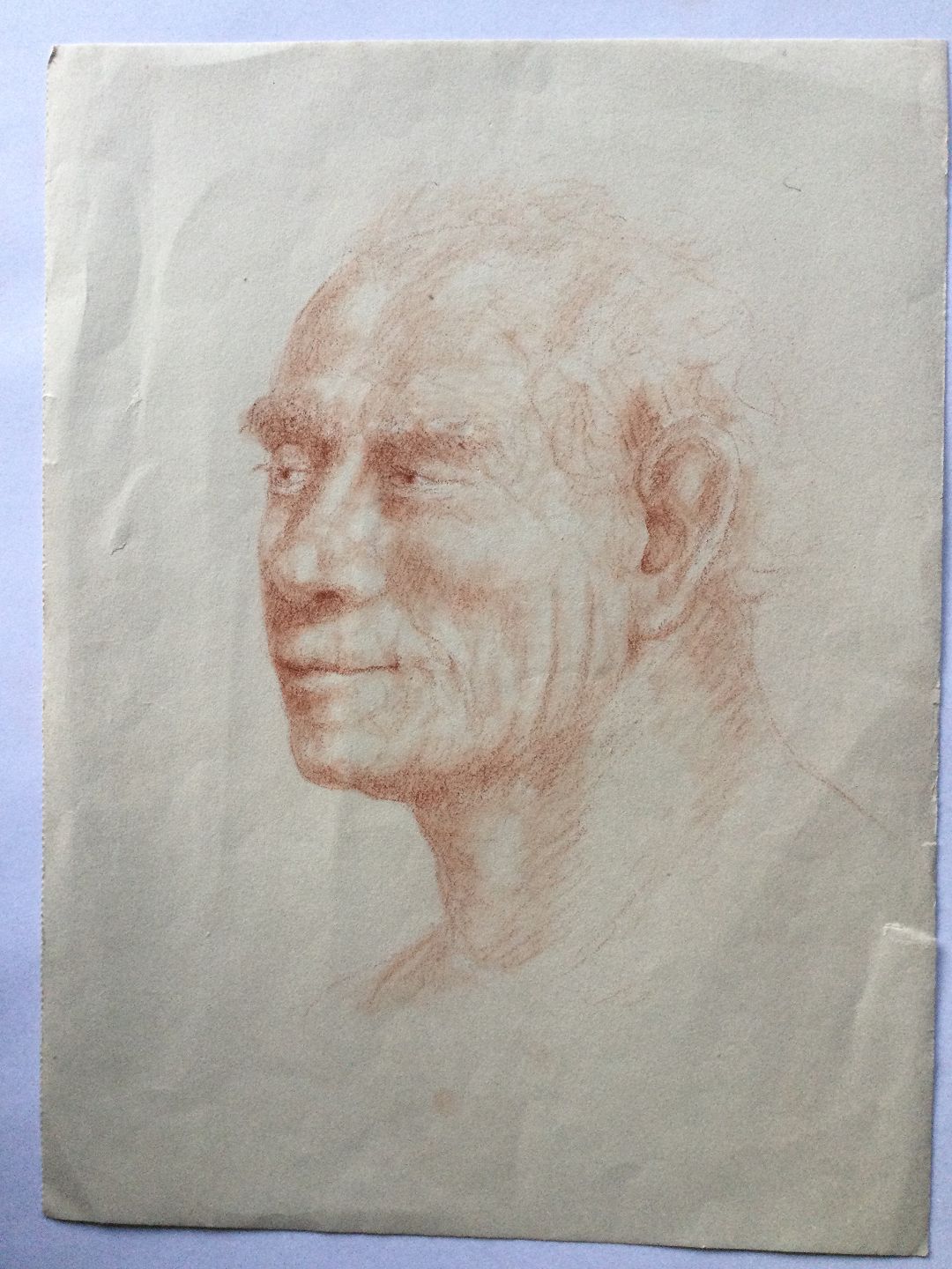Tegning af Robert Büchtger - Portræt af ældre mand.
